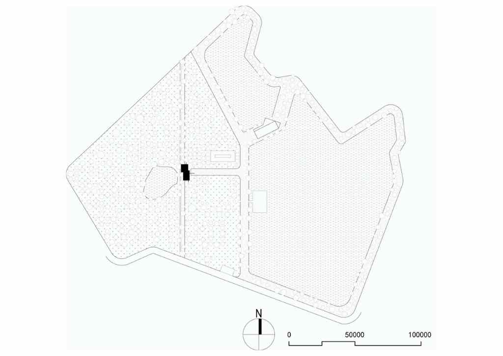 At the back of the structure, the bamboo resembles a shield, with the view available at both sides and up from the roof. The depth of the bamboo forest is emphasized when looking from afar, so it is named “Small Bamboo Recess.” Looking Small Bamboo Recess afar, it takes a permeable shape, with a few walls stretching out of the roof to spread to the site, conforming to the two basic starting points of the architecture.