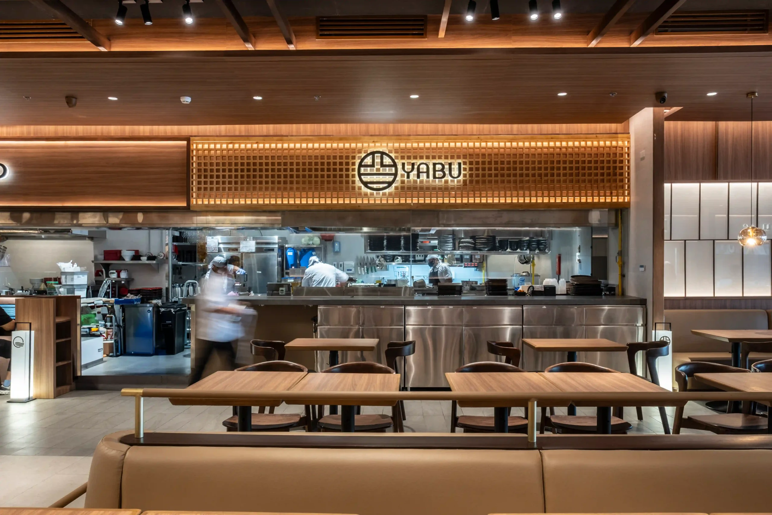 Designed by the Architecture team at C+Y Design Studio, the space was formed to craft intimacy amidst a high-traffic commercial setting. The arboreal accents define the spatial design through the strategically placed Japanese maple trees that serve as the space’s visual anchors. Not only do they guide diners, but they also integrate an organic form that further drives the overall sense of tranquility.