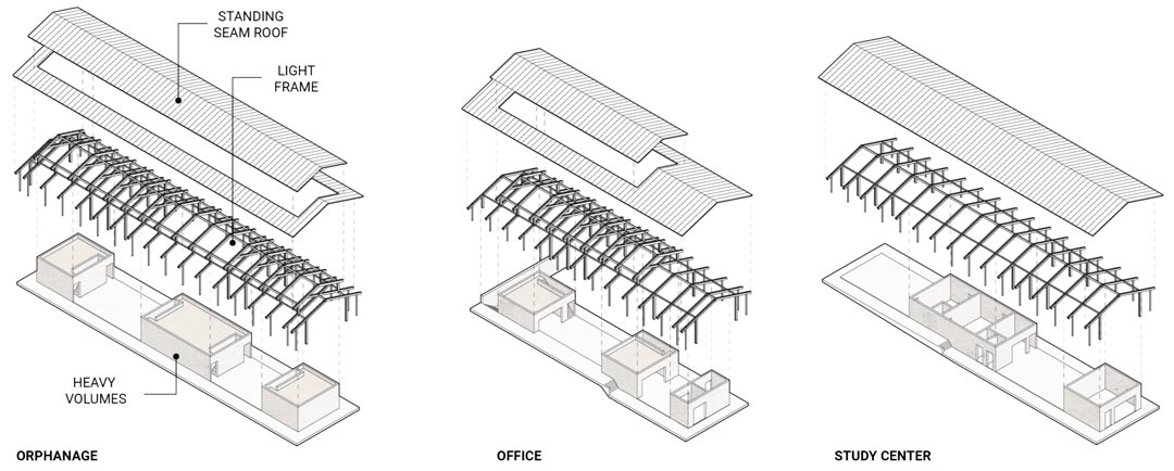 The construction methods selected were deliberately simple for the local community to gain ownership of the entire project from design to construction and beyond. The architecture explores the values of honest materiality, craftsmanship, expressive tectonics, and vernacular sensitivity.
