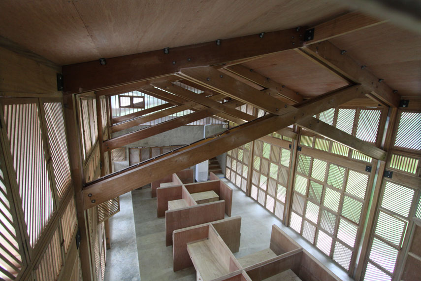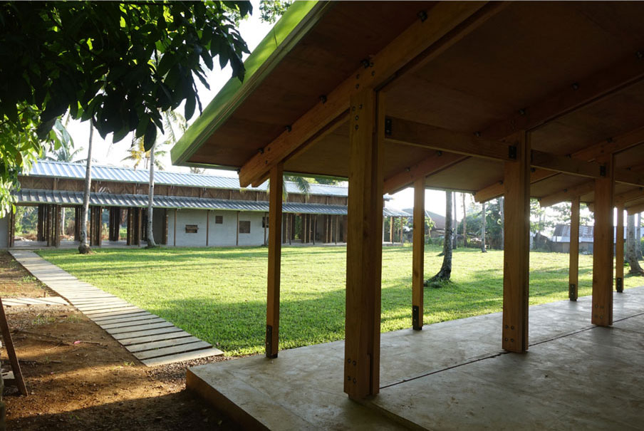Having experienced the brutal power of the winds and waves caused by the typhoon, the two concepts of ‘open and light’ and ‘closed and safe’ surfaced as the most important to the group. The heavy concrete volumes were designed to provide refuge during typhoons, while the ventilated light timber structures provide for natural ventilation that also allow strong winds to pass through, instead of push, the buildings.