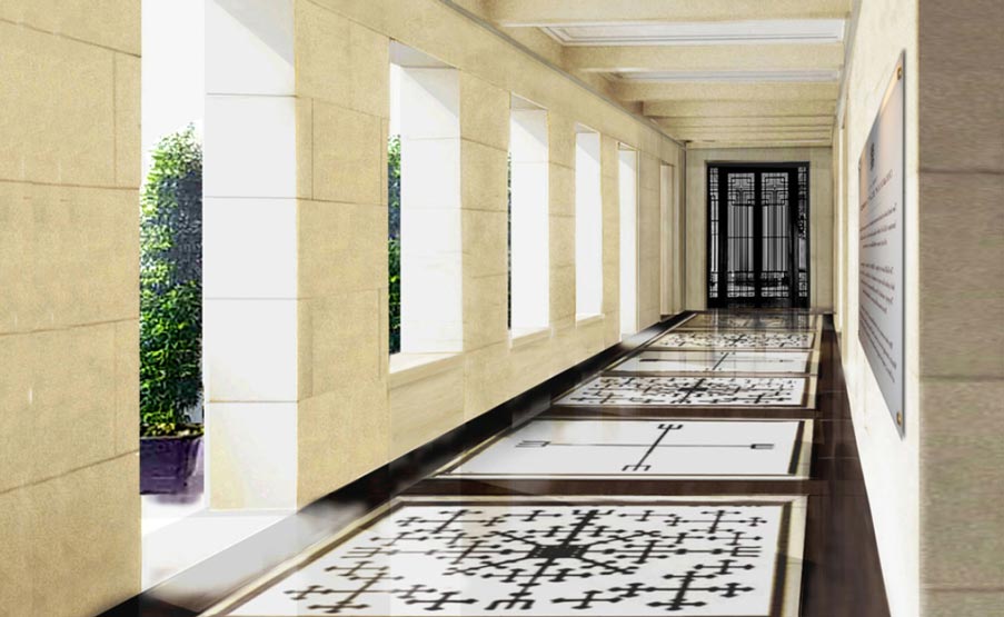 The floor pattern of the Fourth Floor Gallery formerly containing the Cabinet Secretary’s offices, for example, could suggest the former space plan. The Ground Level corners of the Courtyard all contain decorative altars that contain the first letter of what could be the surname of a former cabinet secretary. Preserving at least one of these altars could serve an archaeological purpose.