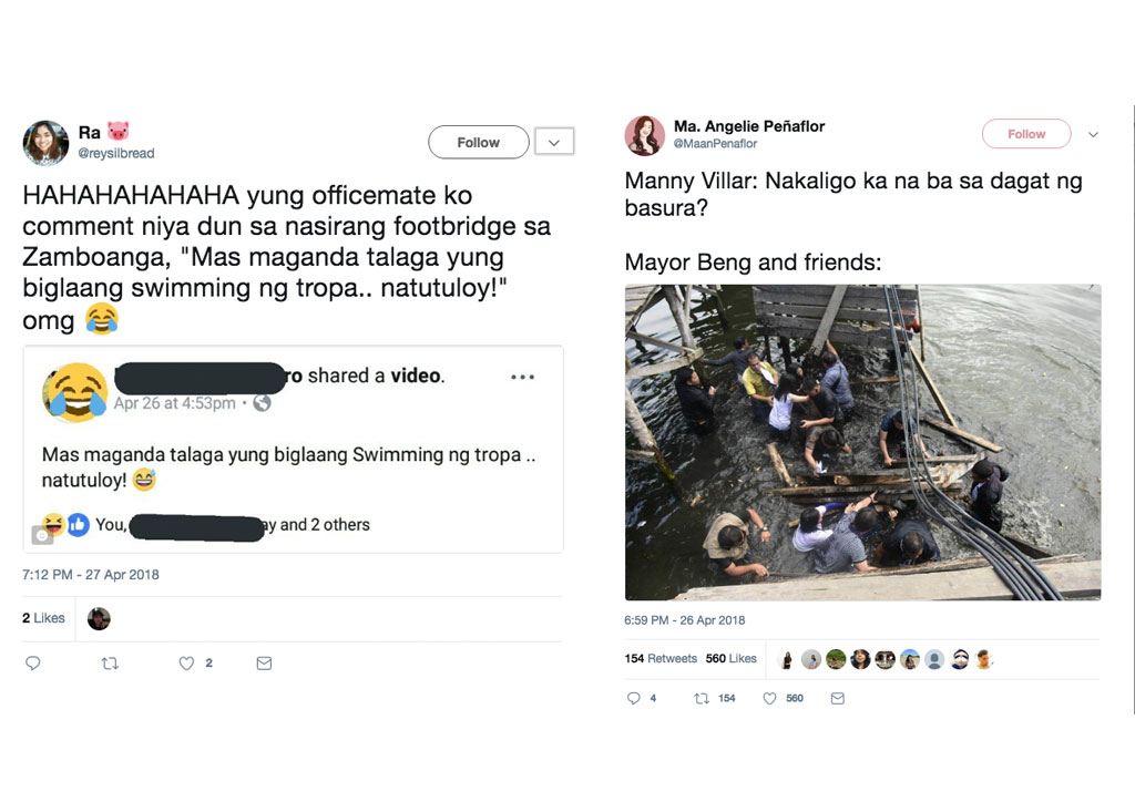 The materials used for the footbridge are evidently substandard. And wooden footbridges may not even be the best long-term connective solutions for the area. How they sourced and approved these materials to build the footbridge, only the authorities know. But one thing’s now known to all: Corruption leads us nowhere but down—in the case of the visiting officials, down into the murky waters in Barangay Mariki, Zamboanga City. ![]()