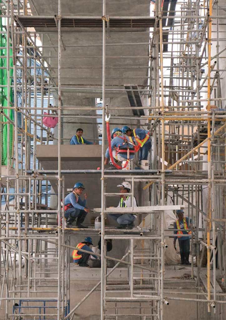 Access to the upper floors, including the VIP section, are either through the elevator or the stairs. Pictured here is the installation of steel cladding on one of the two sets of staircases.