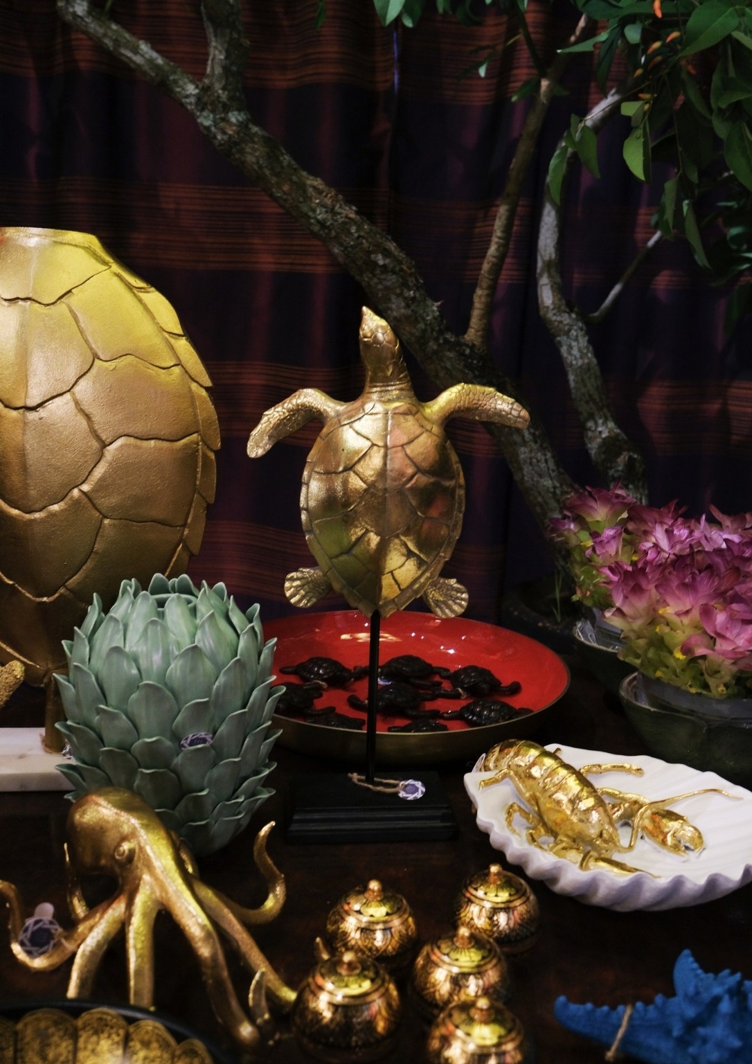 Her 8ROOMS booth which she describes as the sea, jewels, and beyond takes inspiration from the ocean. She expresses herself as a beach girl who craves the ocean whenever she needs to think or reboot. The pawikan or the turtle is her favorite item in the room. It is a sentimental piece from South America given to her by her father some decades ago. The turtle starts out the booth curation and everything came together beautifully thereafter.