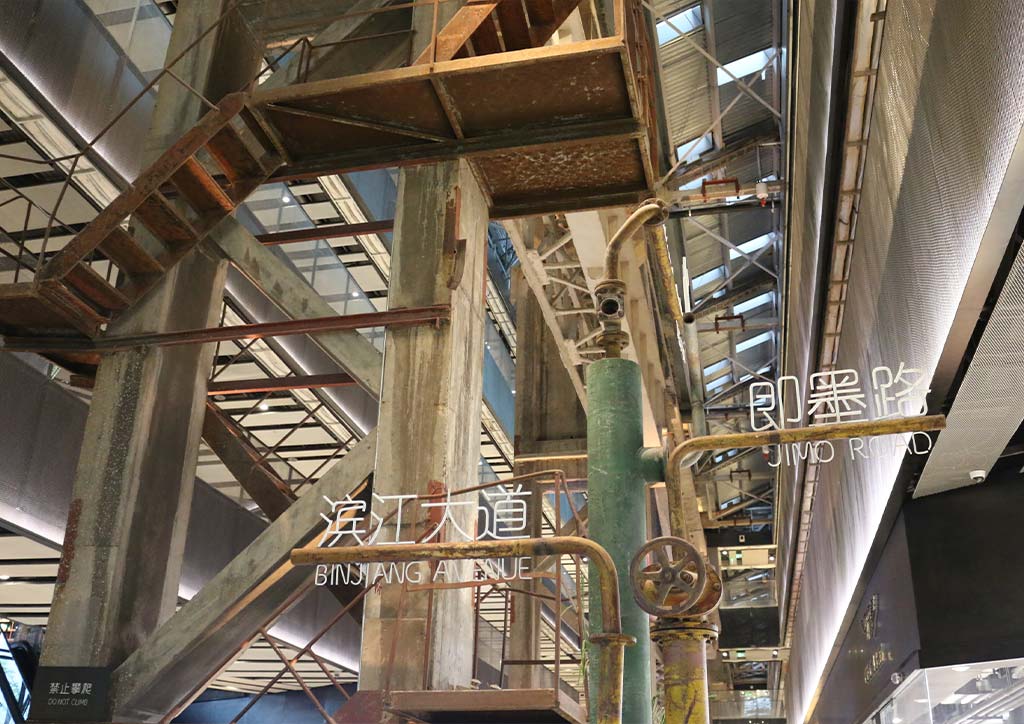 Facing the Huangpu river amongst the buildings of the Lujiazui Financial district is Shipyard 1862, an industrial adaptive reuse project designed by Japanese architect, Kengo Kuma. The building is a former shipyard with a footprint of 200 by 45 meters and a 12 by 30 meter grid, able to accommodate the construction of industrial ships. Today, the shipyard is a commercial complex with high end retail stores, event spaces and an 800 seater theatre with uninterrupted views of the river.