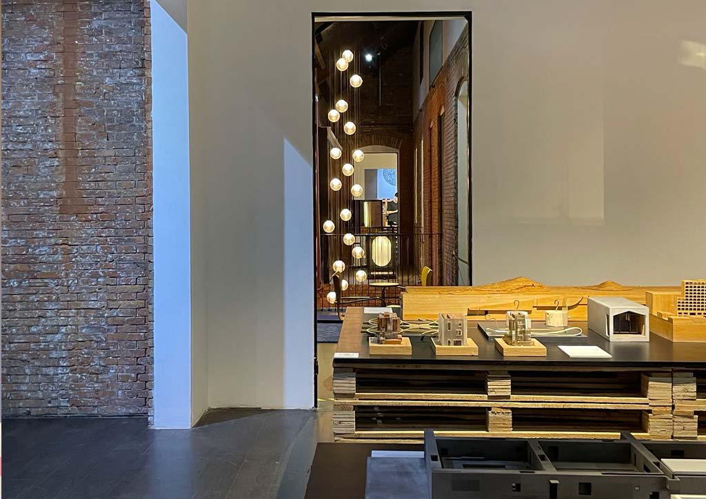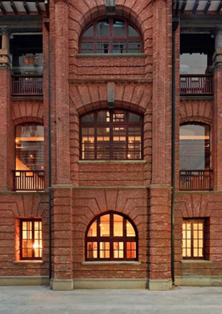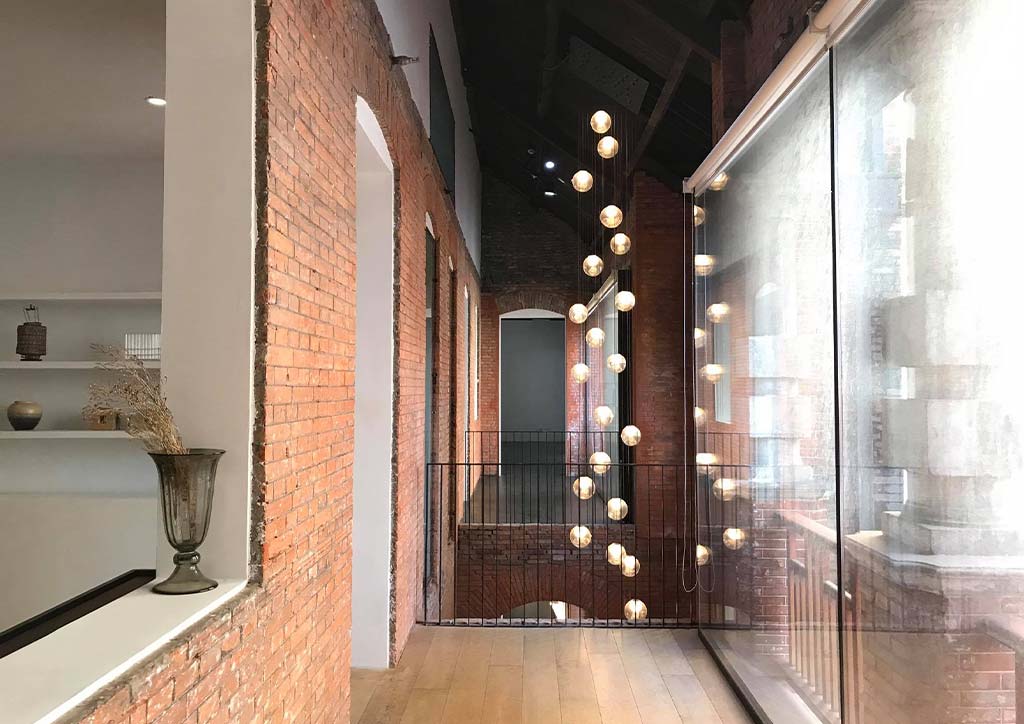 The building’s original brick facade is kept intact aside from some glass street front additions allowing connection to pedestrians. Much of the attentive restoration can be found in the interiors, visible through fresh white plaster walls layered over preserved existing brickwork. This juxtaposition of old and new, create an interesting canvas space for changing displays and installations.