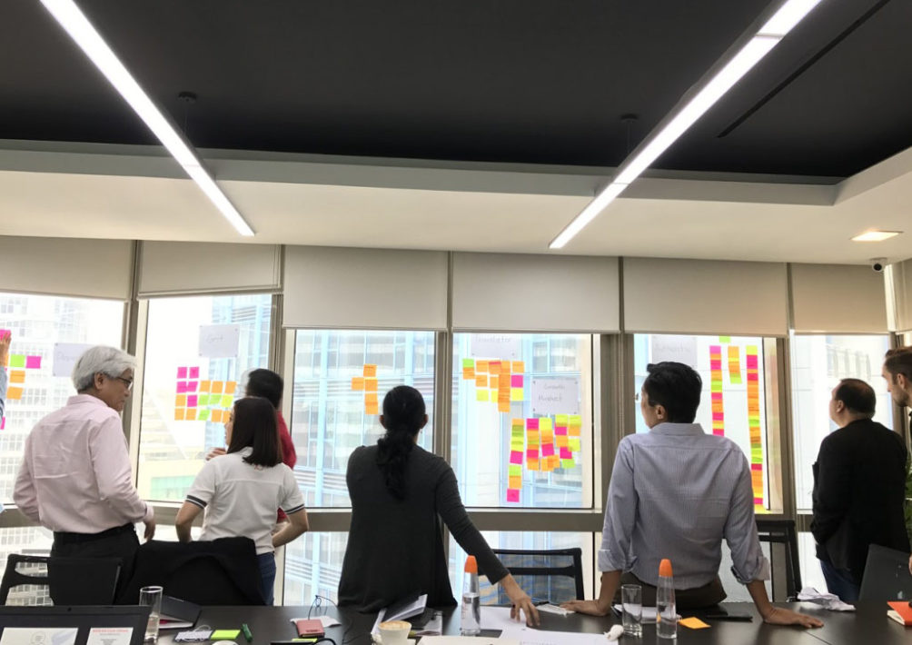 Aidea’s management team at a culture-building workshop in the boardroom, 2019