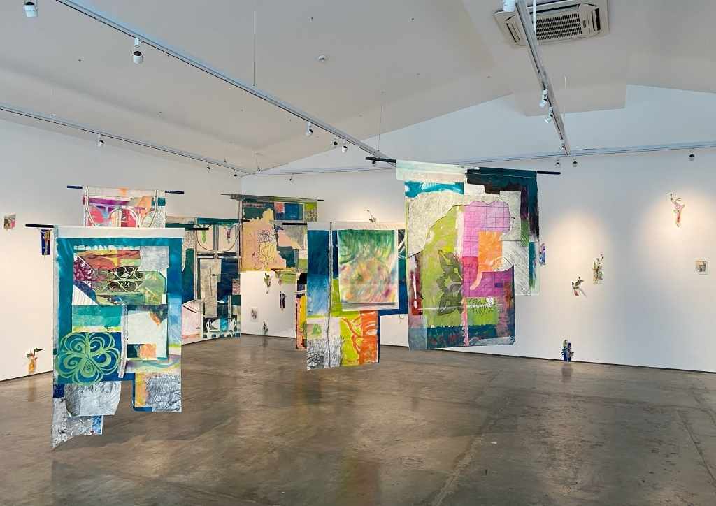 “I started making small collages cut from old paintings. And while doing it, ideas kept flowing, especially when I worked with embroidery using textile and thread,” she comments. “By the end of each month, I had a grasp of what I wanted to do, especially how I want it to be presented”. For her, the deadlines set were just markers of the inspirational works she has finished in her studio. She also considers each piece or show as a preparation for the next idea or concept.