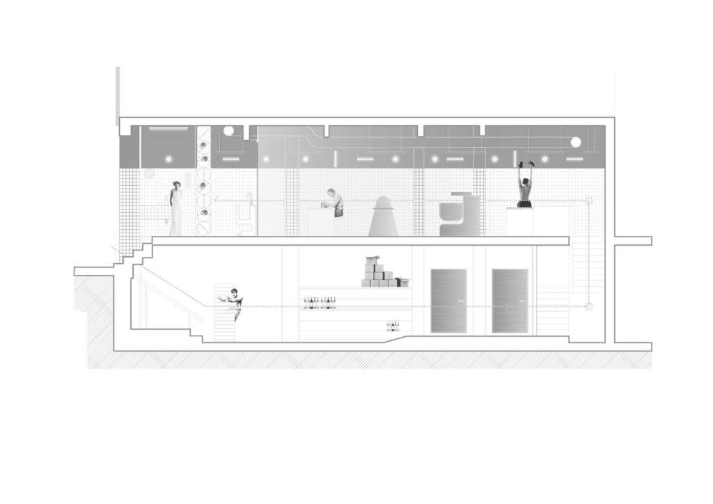 This project aims to celebrate the bakery’s sales and production. Customers will not only see the baked goods when they visit the store. They will also have a glimpse of the production process. The storefront and the bakery represent a space for the production and display of baked goods.
