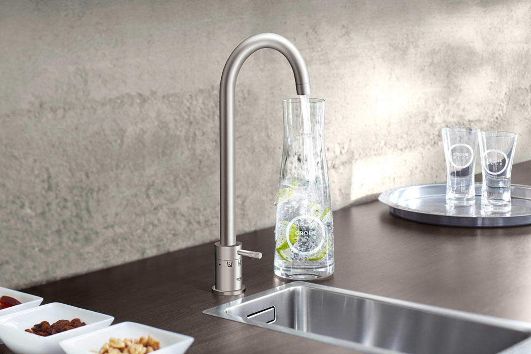 The International WELL Building Institute recommends that more people drink from the tap instead of relying on bottled water. To make it safer to drink water out of our faucets, the GROHE Blue Systems have capabilities to filter tap water and give you options whether you want your water to be still or sparkling.