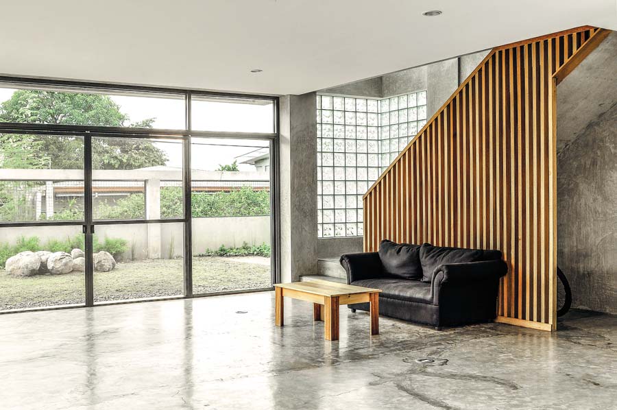 Benedicto used reinforced concrete columns and beams, and concrete masonry units aligned in a rectangular grid to reduce formworks. The perimeter fence is made of concrete as well, and like the two volumes, was left unplastered. “We don’t always have to put plaster on concrete. Poured concrete has such a great smooth finish,” she says. As a result, the house’s overall texture feels naked but clean, thanks to the quality workmanship of the contractor, Ken Javier.
