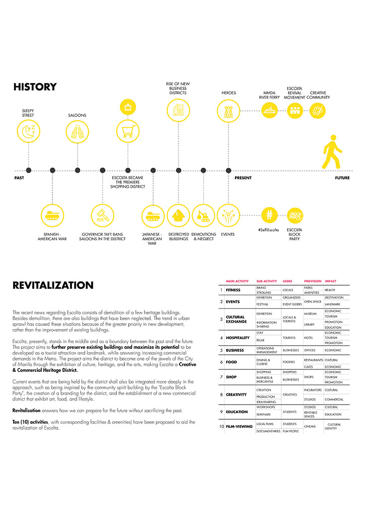 The district’s vitality can be enhanced by injecting new life on its streets. As experienced during different cultural activities programmed in Escolta, the district’s rich physical narrative can be highlighted as a playground for creative urban activations. Case studies also show that a better streetscape enhances property values of surrounding neighborhoods and generally makes for a healthier and more robust community.
