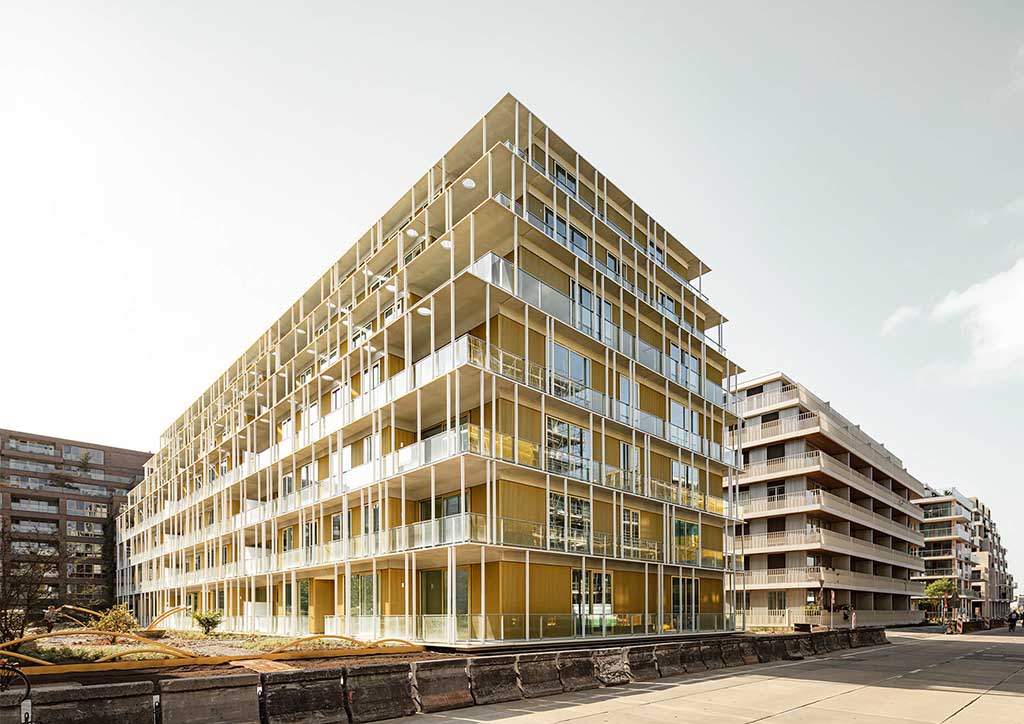 Completed in 2021, The Line apartment building is also built from sustainable range of materials that secures it of having a long building life span. Most of its façade components can be removed, recycled, and installed back again whenever necessary. The residential units are linked to a shared thermal storage facility, which allows cooling in summer and heating in winter. What’s more, the communal garden also contributes to the biodiversity and well-being of the residents.