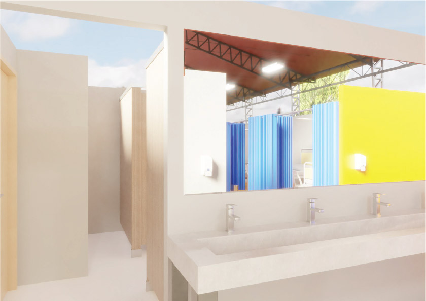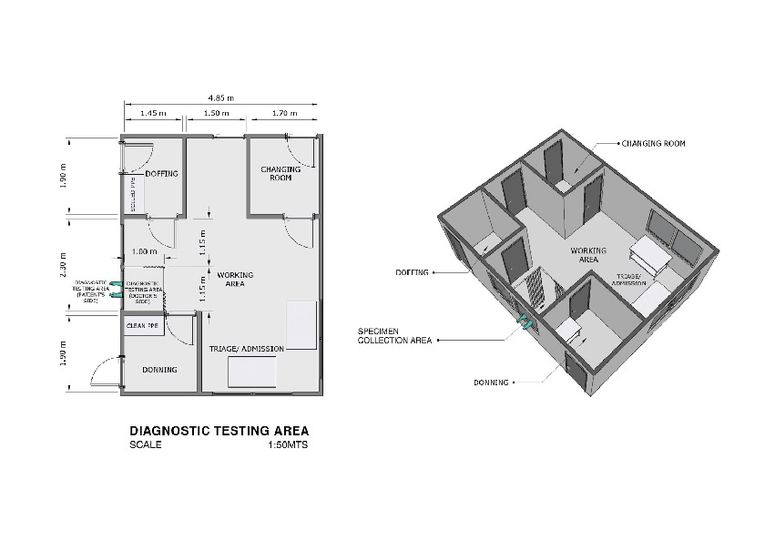 This Ligtas COVID center was designed by a multi-specialty team that combines architects, engineers, planners, and interior designers from Palafox Associates from the MS Innovation and Business Program of the Asian Institue of Management (AIM), and emergency and disaster experts. Field hospital managers, health systems professionals from the Philippine Society of Public Health Physicians (PSPHP), and the Alliance for Improving Health Outcomes (AIHO) were also included.