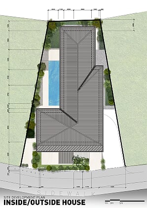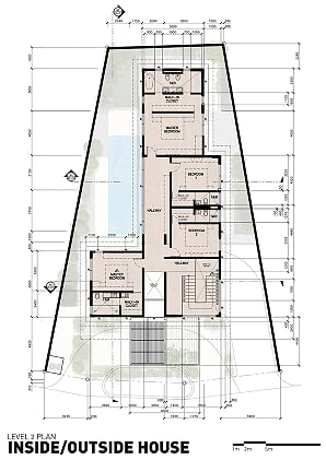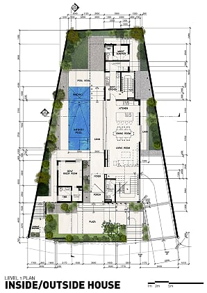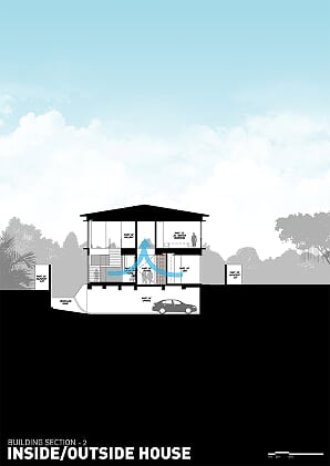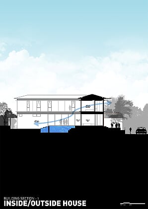 Creating spaces that seamlessly permeate through each other, the two-story Inside/Outside House is a manifestation of visual continuity between exterior and interior spaces. Elements were designed to respond to the climatic conditions of the tropical environment.