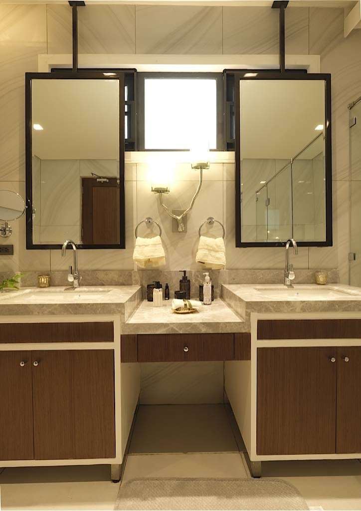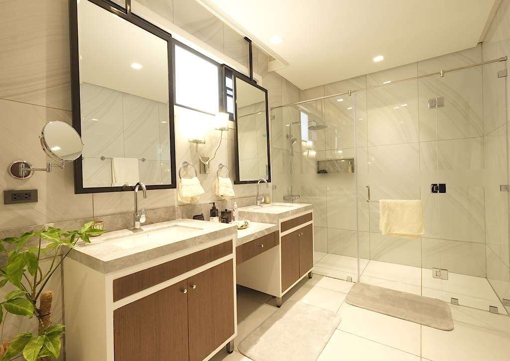 For the main bathroom, the toilet, lavatory and fixtures are from top of the line brands, all carefully selected to exude opulence and grandeur. The rainshower is even a smart shower, encased in a transparent spacious stall to take relaxing showers in. There are two basins for husband and wife as well for them to do their personal routines.