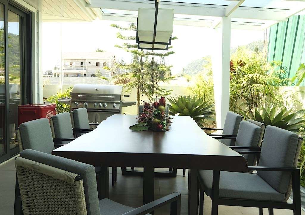 As the owners believe food unites, attention was given in the designing of the dining room. Making sure that the design of the house feels personal, even the selecting of the plates and utensils are collaborated with the owner. As the owners have a big extended family, they sincerely opted for a nice flow for every room of the house. The dining area opens up to the lanai, where there is another dining table where the cool breeze flows in naturally. There is also a barbeque grill that is fitting to the theme of the American home and the family has often used it as well. The lanai indeed is very practical for feasts and parties, especially this holiday season.