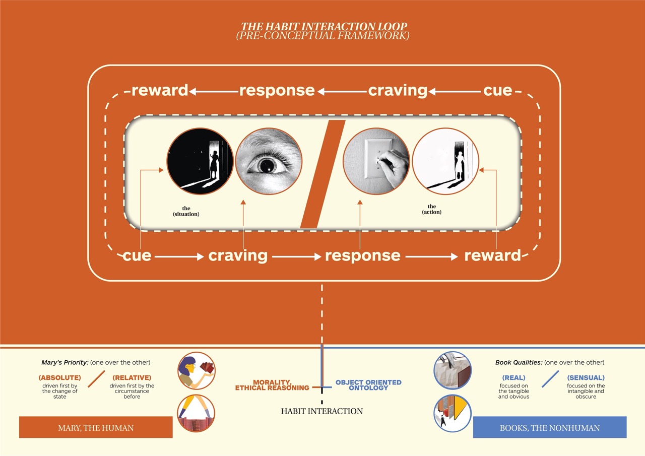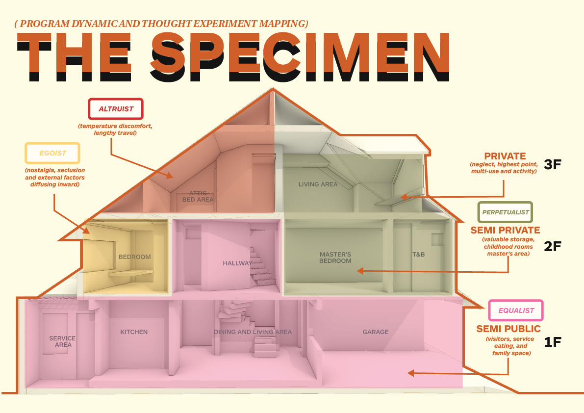 From there, a breakdown of habit formation and architecture’s influence on this human condition is established. It serves as the basis that forms the correlation between an object’s characteristics and the user’s reactions. The concepts of equalist, altruism, egoist, and perpetualist serve as the main concepts based on the priorities formed by associations.