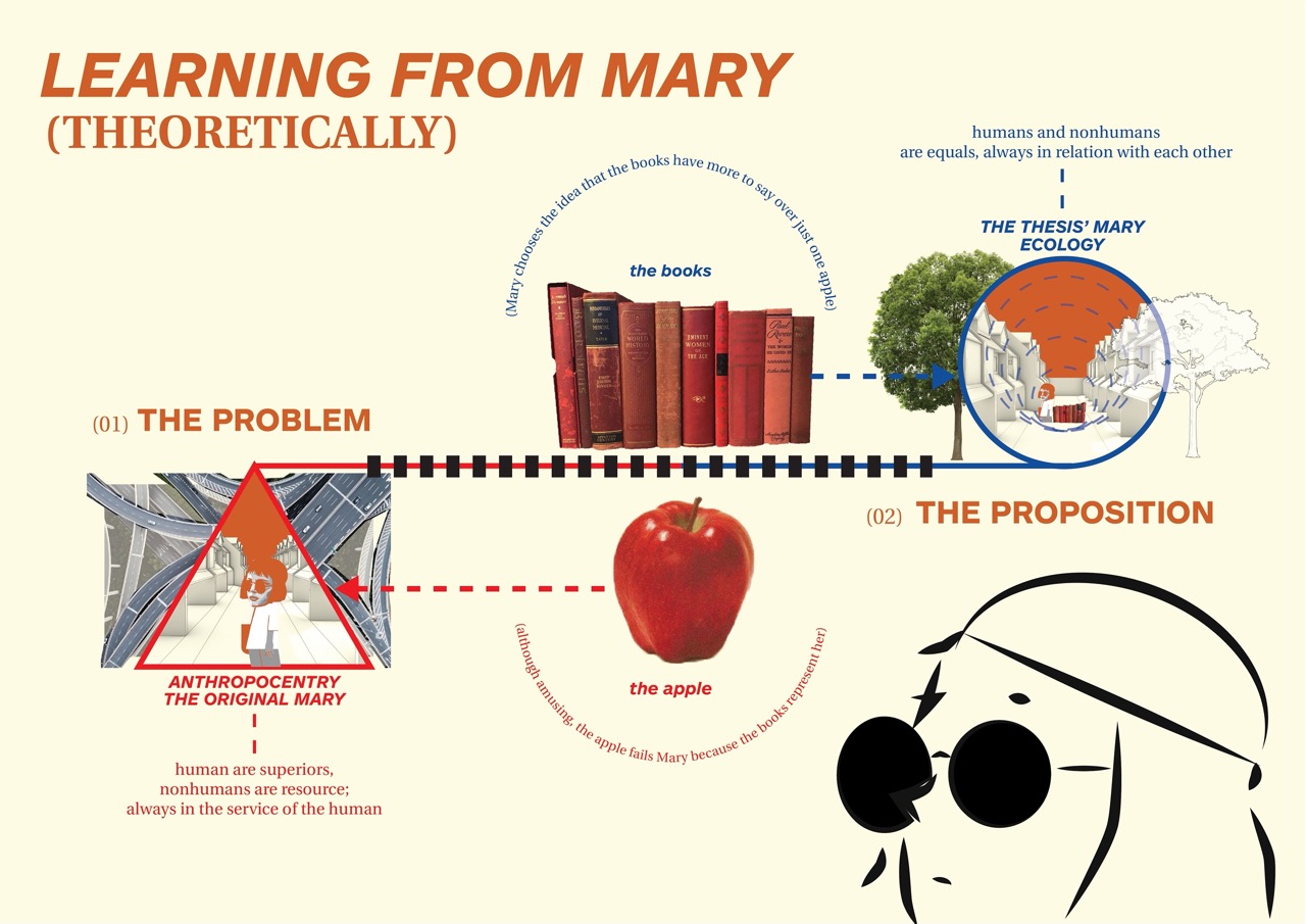 Conversations with Mary deeply explores how built spaces benefit both human and non-human entities by the function and organization that it provides. The thesis utilizes the power of narratives and sequels in contextualizing values and information. These qualities can help one generate architectural concepts by its use of hermeneutical analysis and thought experimentation. In the Youtube Video below, Javi Zagala presents his thesis in his own words.