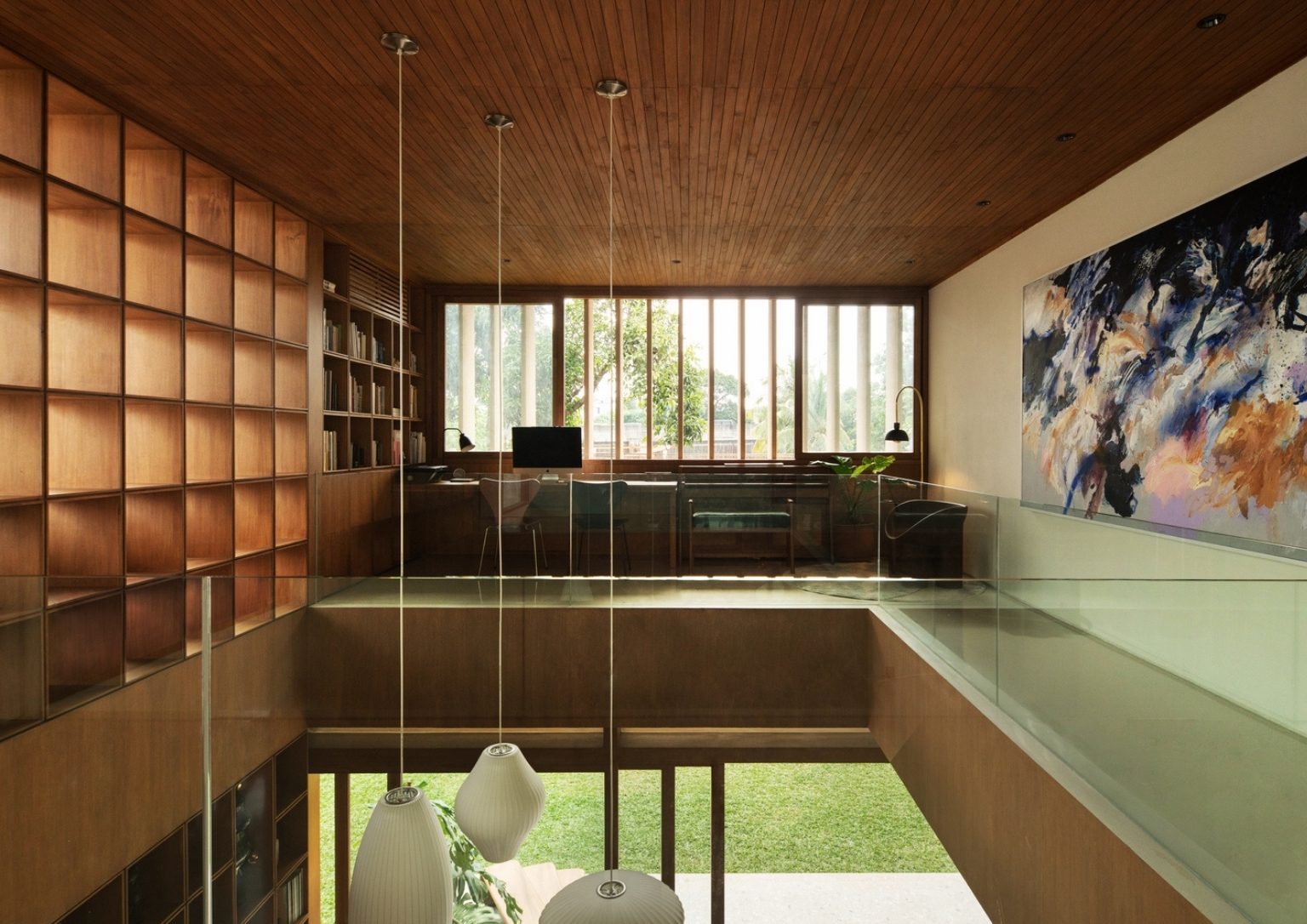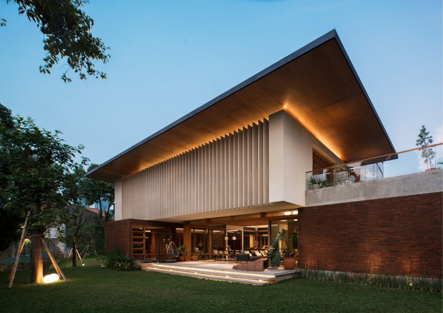 The mix of materials, minimalism, merging indoors and outdoors, and natural shades with pops of color characterize Mid-Century Modernism or MCM. Bitte Design Studio creates a house in Cilandak, Indonesia, that ticks all those boxes and calls it The Dhscac Residence. Elegant patterns, slatted wood panels, open spaces, and massive glass doors make the whole house flow with individuality.