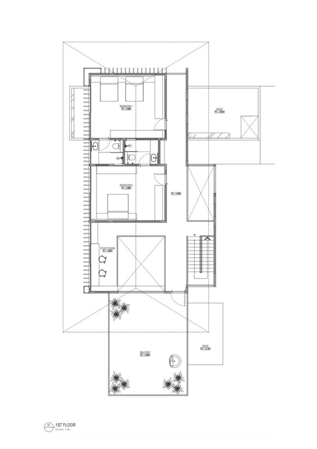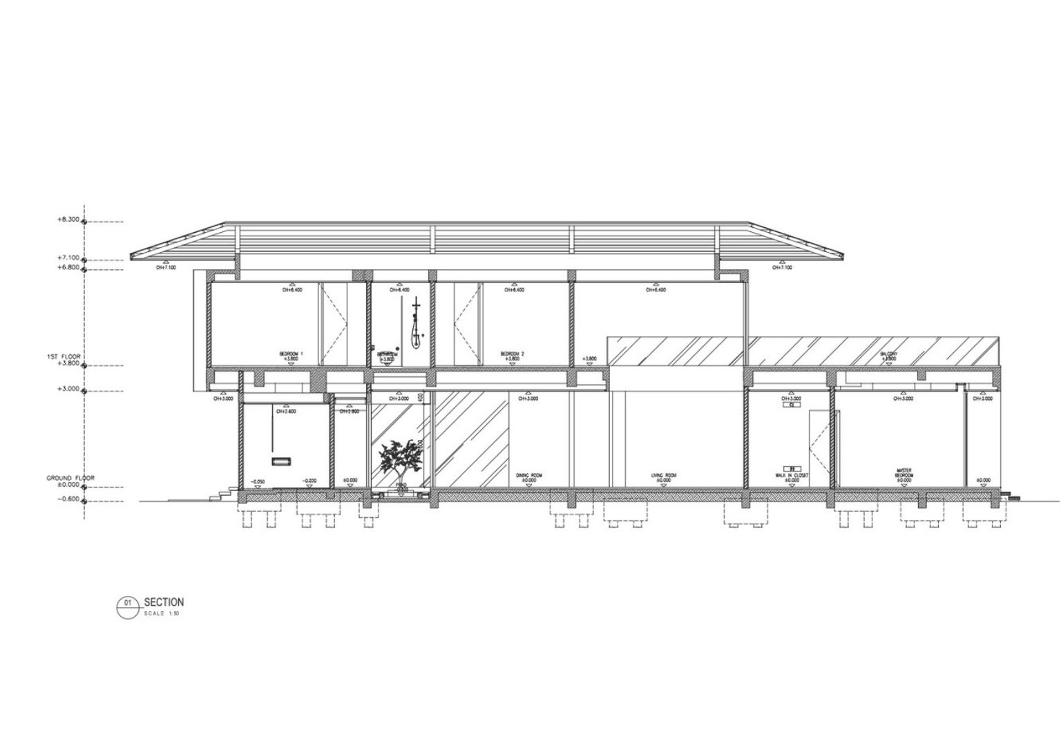 One of the vital architectural elements of the Dhsac Residence is the wide roof that protects the big apertures from tropical weather elements. A shadow partition on the west side allows airflow from the big opening into each room while filtering direct sunlight.