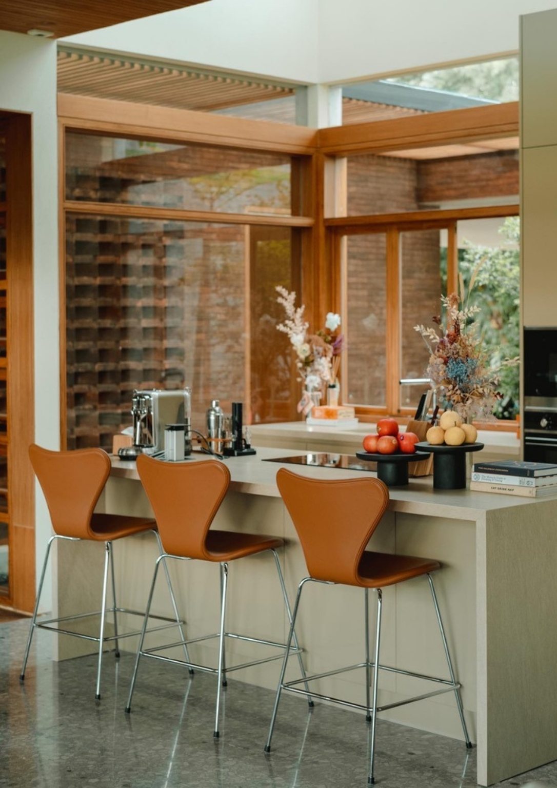 Furniture pieces from mid-century designers like Marcel Breuer, Loius Poulsen, and Arne Jacobsen adds depth to the house’s interior. The Dhsac Residence is indeed a mid-century modern house with a tropical twist.
