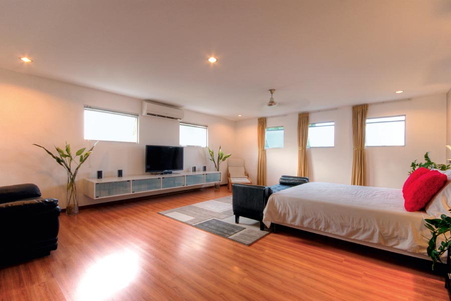 The upstairs bedrooms are situated at the corners of the structure so that each can have at least two windows for cross-ventilation. Lim is big on