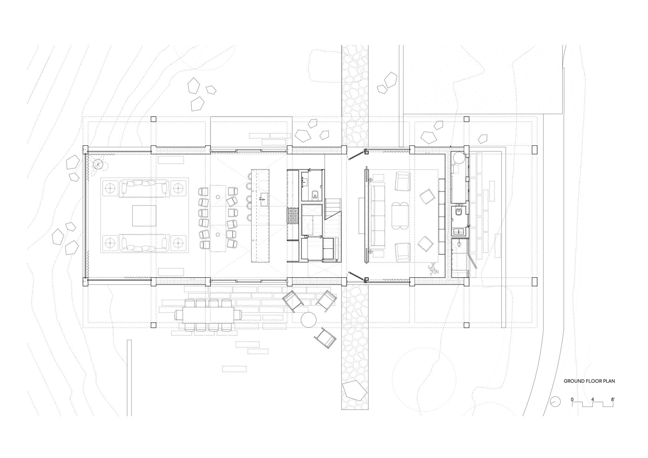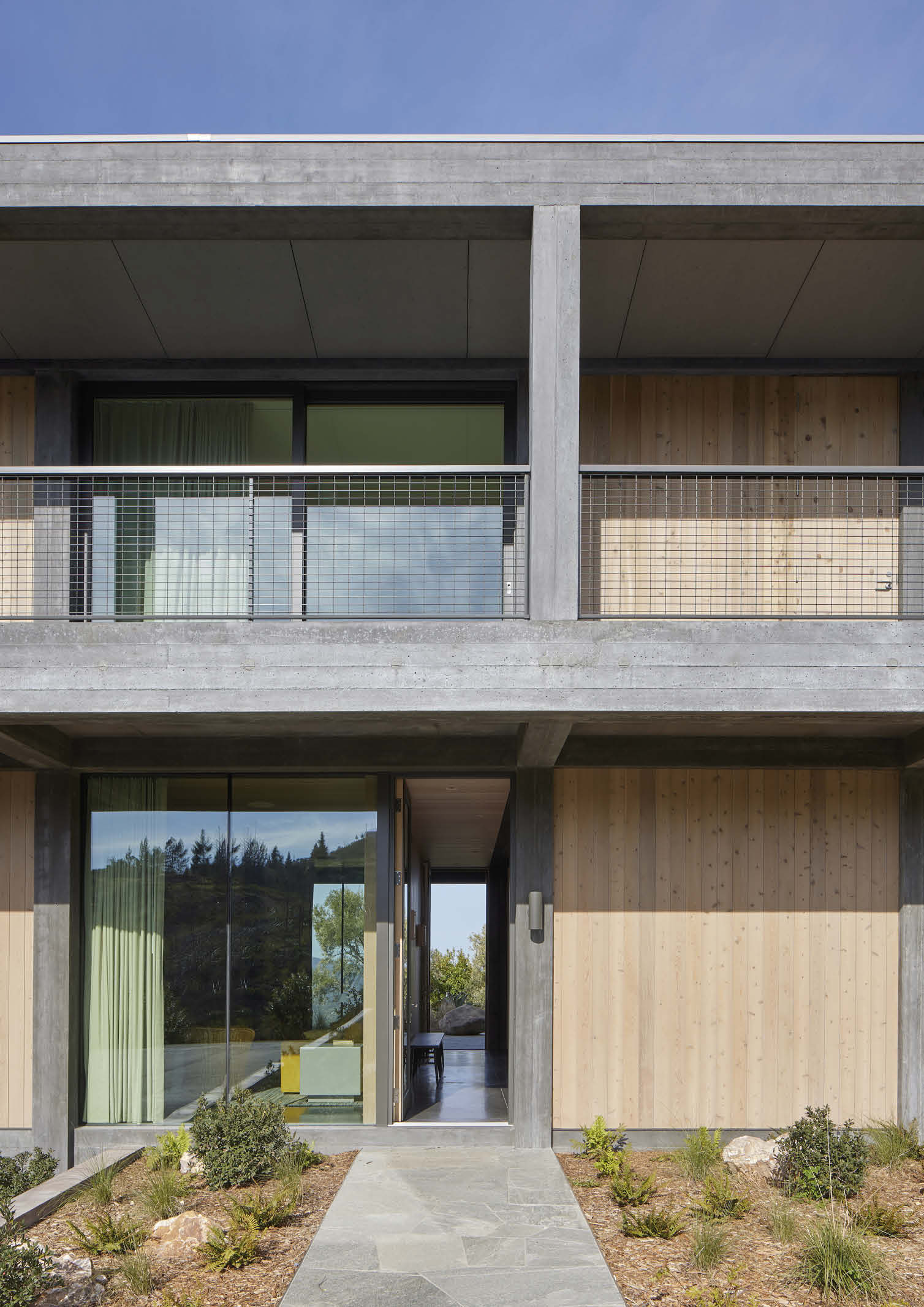 The client, a San Francisco-based family, commissioned the same team to build their three-bedroom guest house to complement their main house. A few months after completion, however, they lost the main house to this natural disaster. The all-concrete guest house, however, survived the fire.