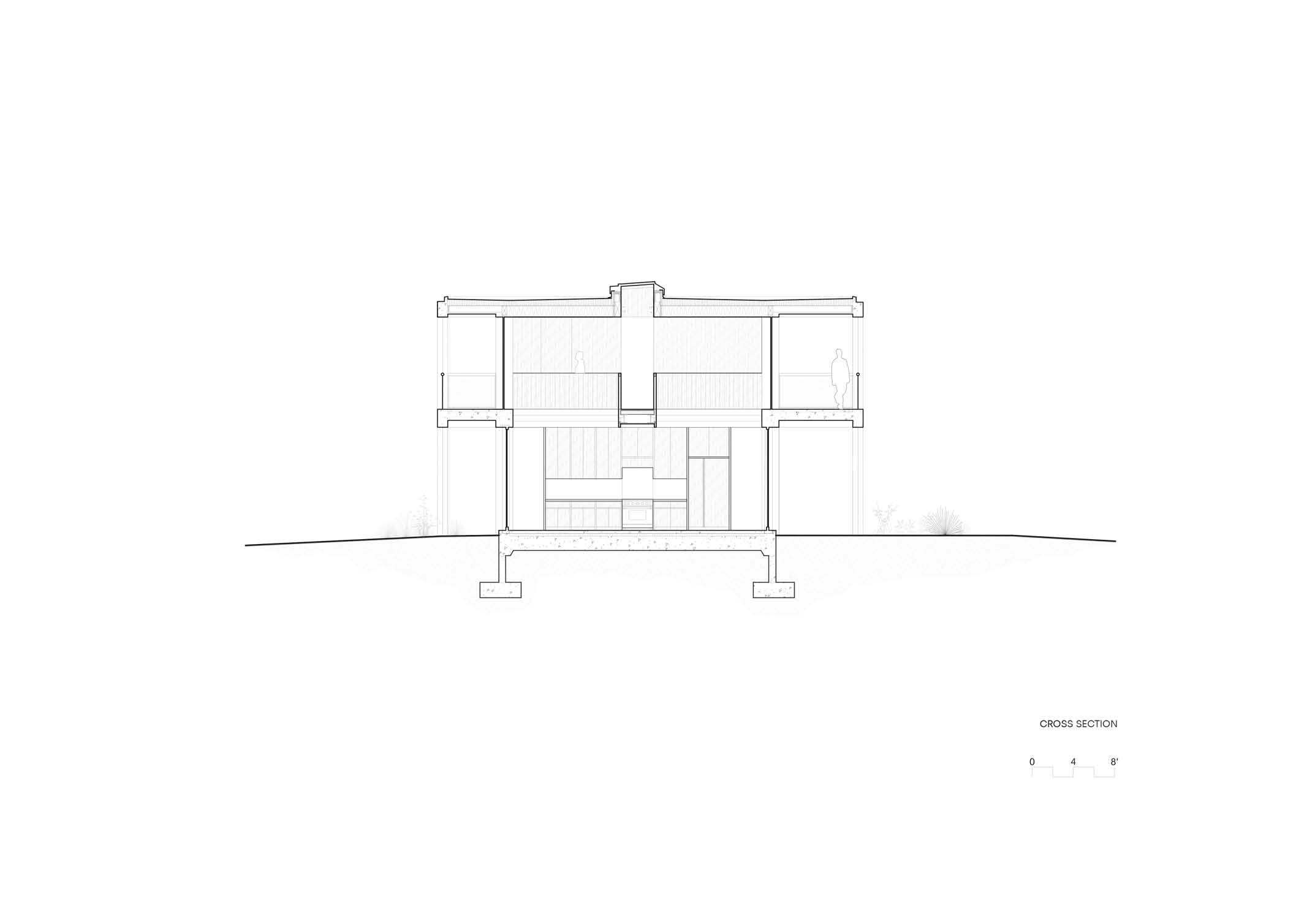 According to the architects, the house relies on both passive and active systems to control its thermal environment and tailor the demands to the occupancy of the space. Deep overhangs and strategic glazing provide natural shading and daylight throughout the home. The slim volume of the home allows for extensive cross-ventilation with symmetrical openings on either side. Radiant heating takes advantage of the thermal mass of the concrete slab to warm the home in the wintertime.