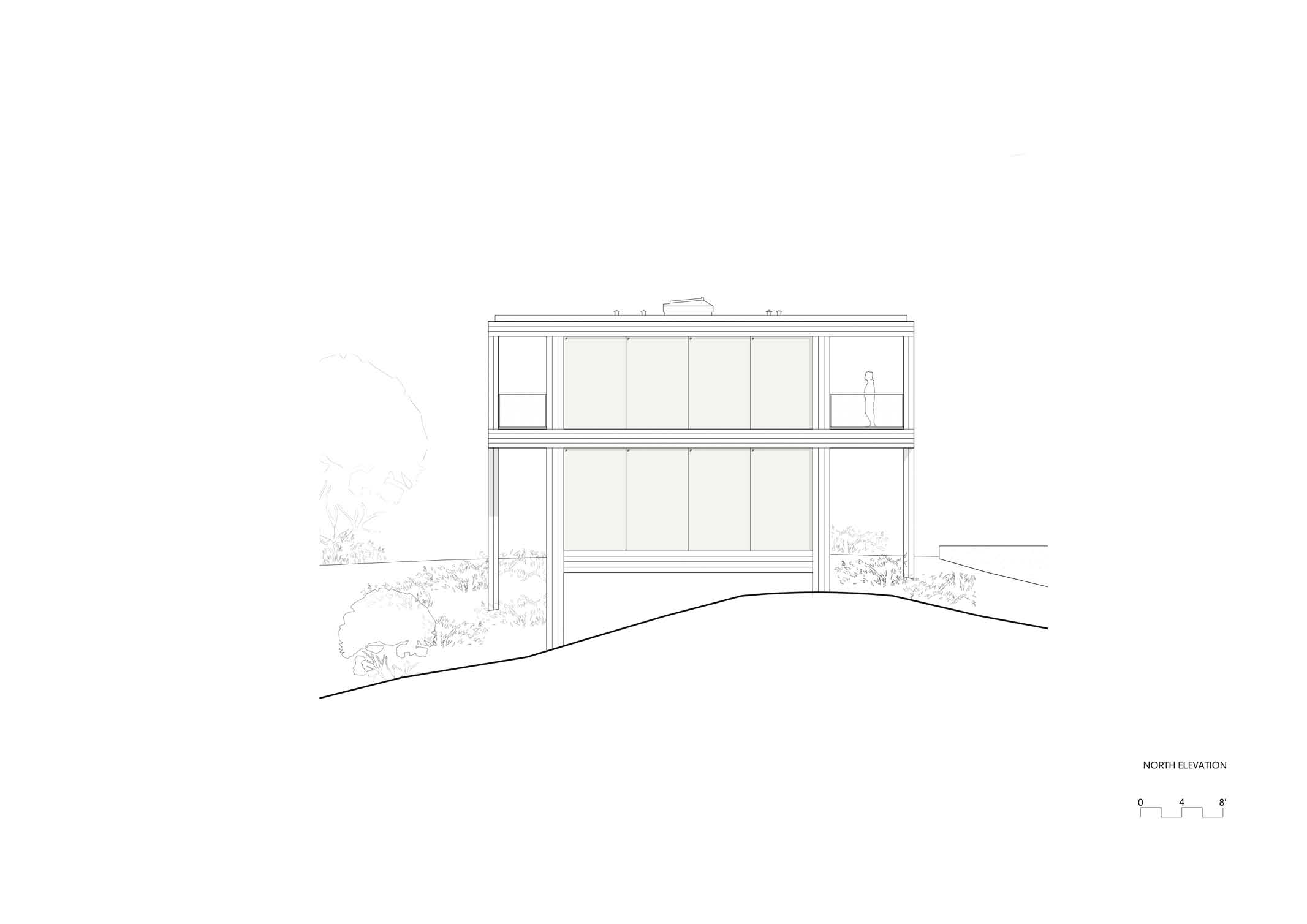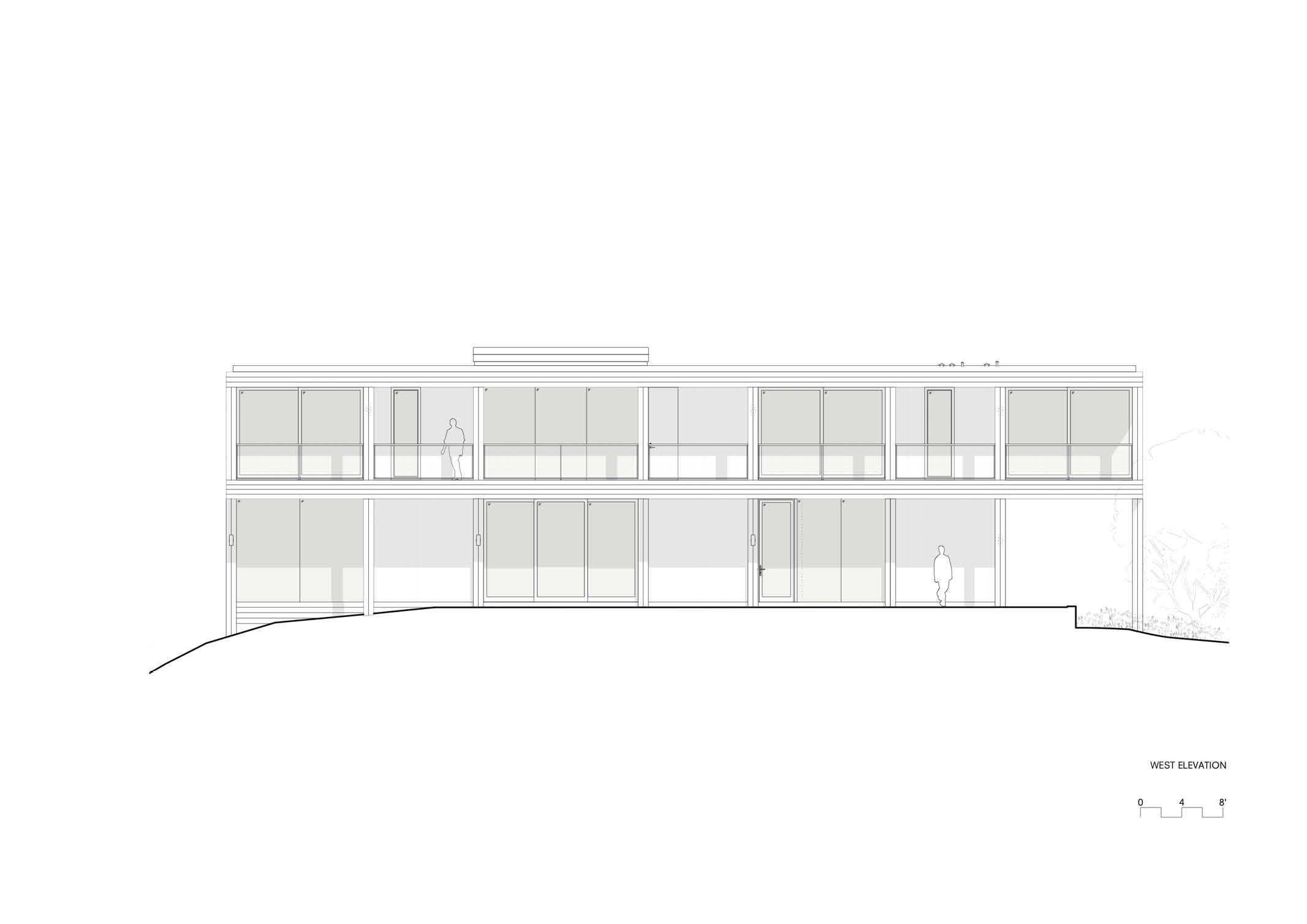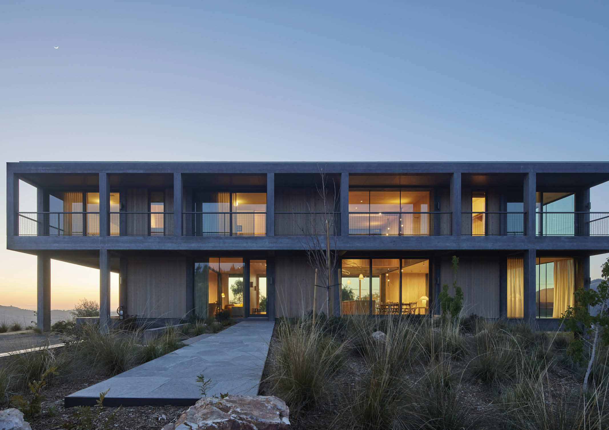 The building asserts its autonomy by means of a contemporary reinterpretation of modernist architecture that in California, especially through the Case Study program promoted by John Entenza in the 1940s, was particularly prolific. The modernist rigor is tempered by the warmth of the wooden infills, reminiscent of local vernacular rural constructions. The rhythm of the vertical elements and the alternation between the opacity of the walls and the transparency of the windows reinforces the impression of graphic abstraction.