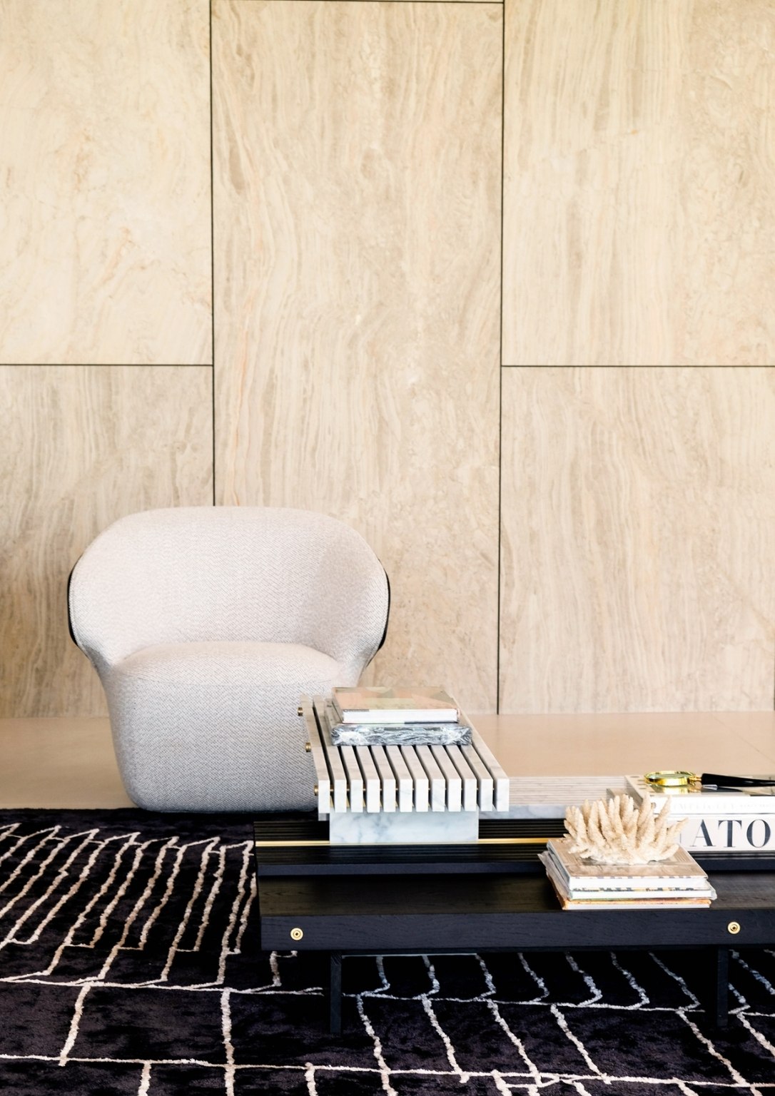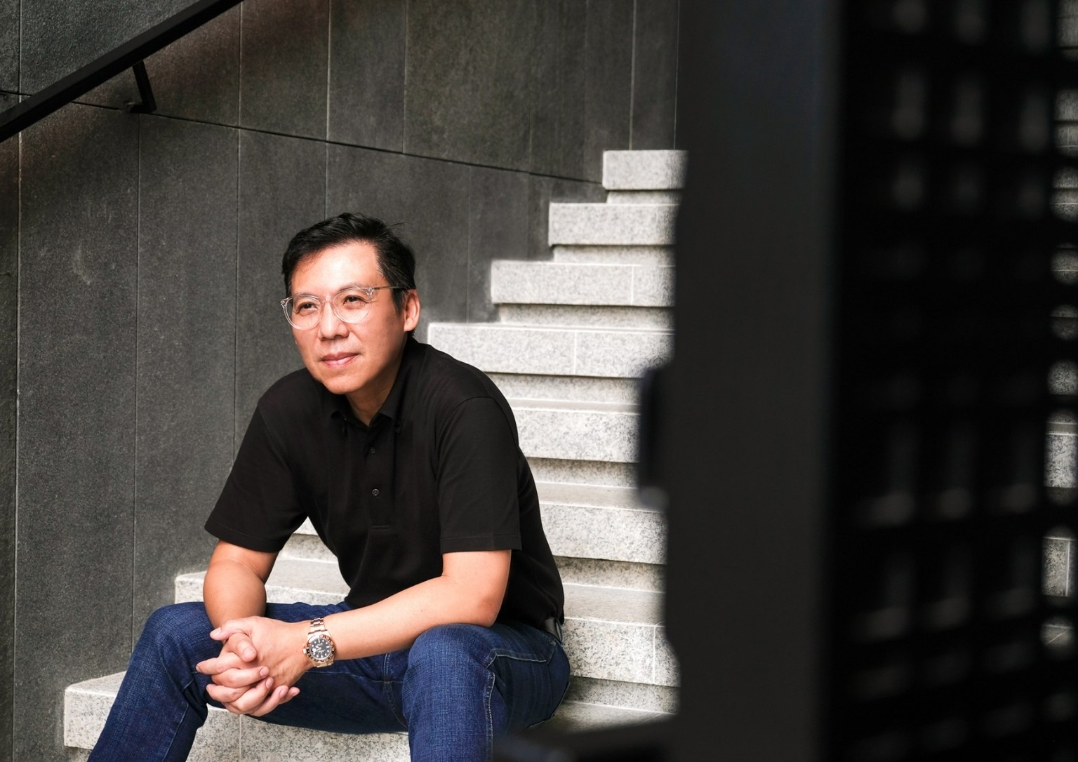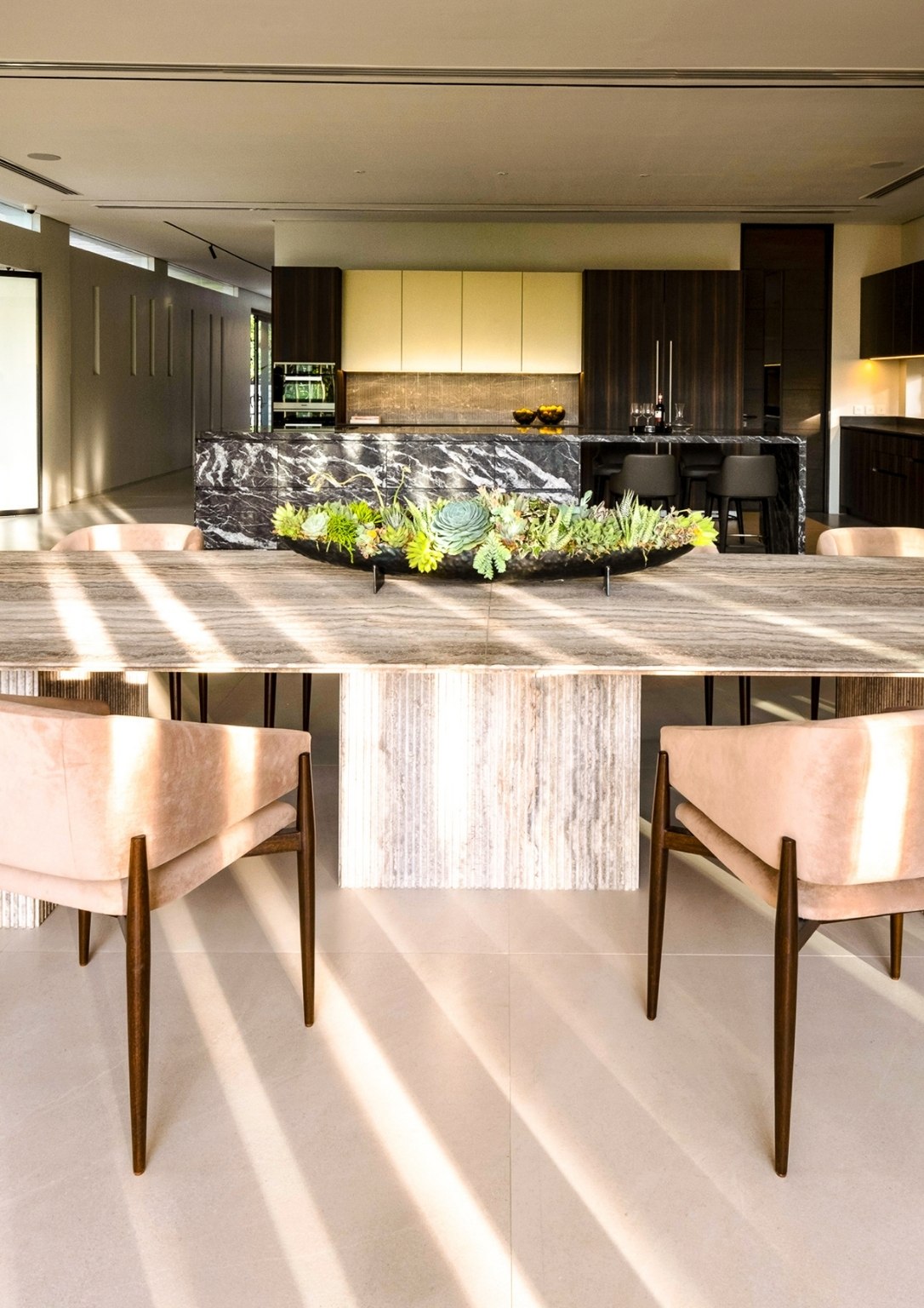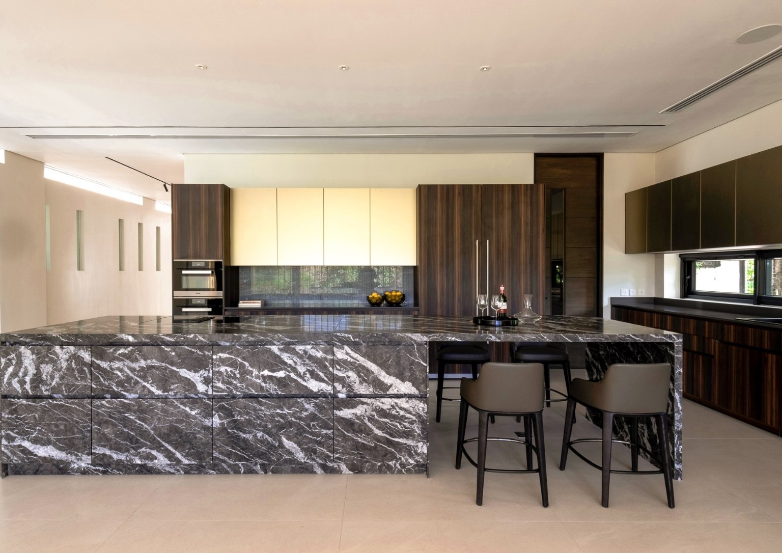 “As you ascend The Perch, you will notice that it is a space made of a singular material: just black granite, with a very minimal black hand railing that we placed lights in. This created the perception of a vast, dark void with a sliver of light at the very end. We wanted that to be the pull,” he poignantly described. “With that light at the very end, you momentarily see greenery, which I felt was something the team and I wanted to highlight. It creates a visual draw. That’s essentially how I wanted to address the issues that I was dealing with for The Perch, which had an unusual topography for a house.”