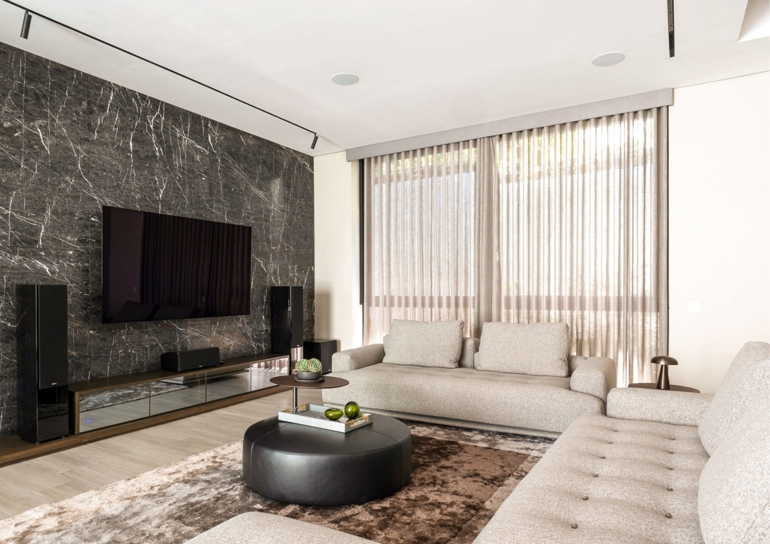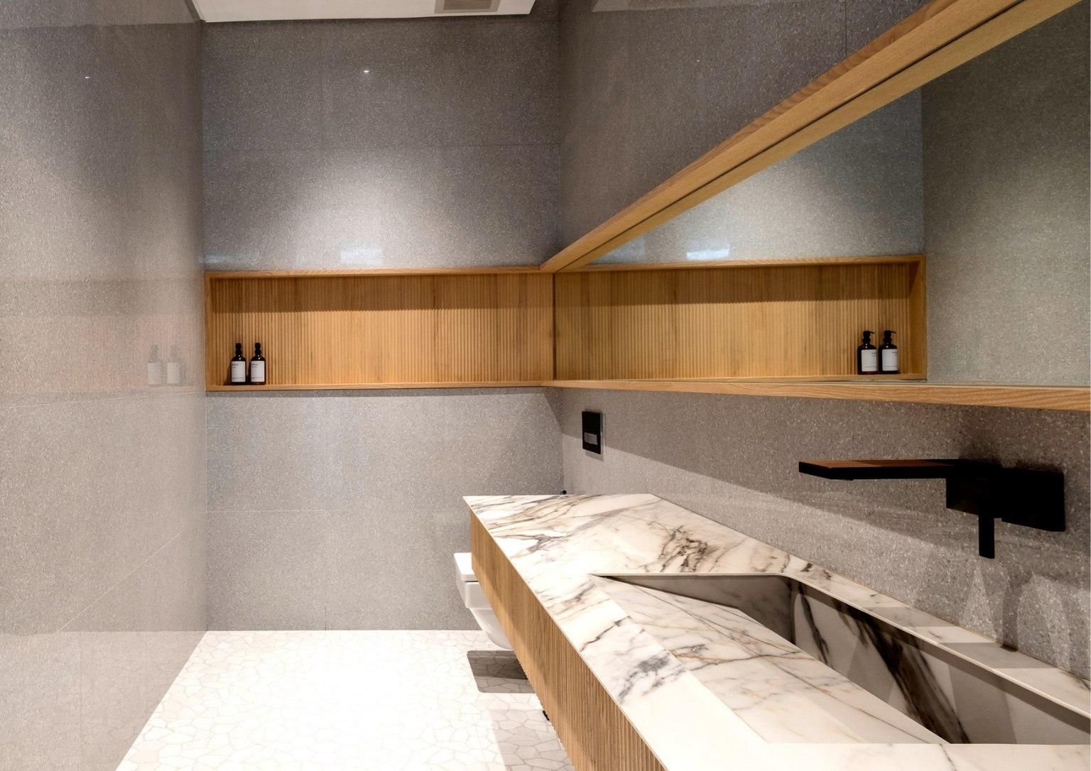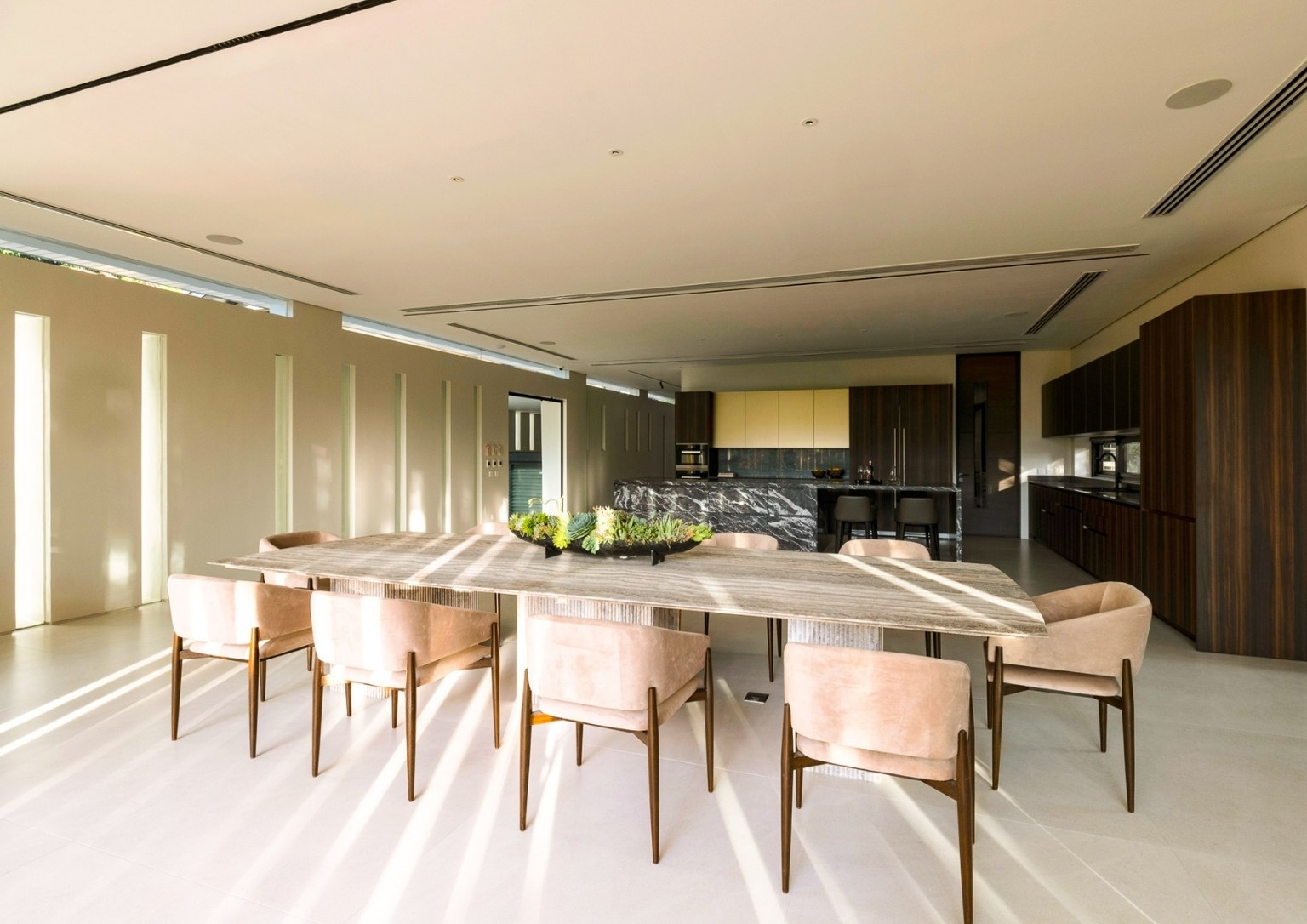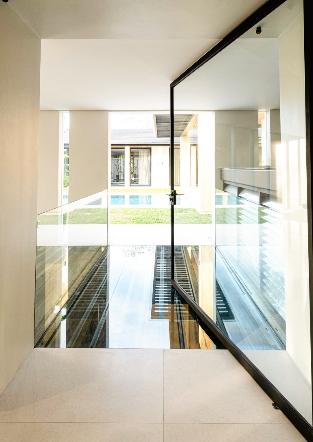 “As you ascend The Perch, you will notice that it is a space made of a singular material: just black granite, with a very minimal black hand railing that we placed lights in. This created the perception of a vast, dark void with a sliver of light at the very end. We wanted that to be the pull,” he poignantly described. “With that light at the very end, you momentarily see greenery, which I felt was something the team and I wanted to highlight. It creates a visual draw. That’s essentially how I wanted to address the issues that I was dealing with for The Perch, which had an unusual topography for a house.”