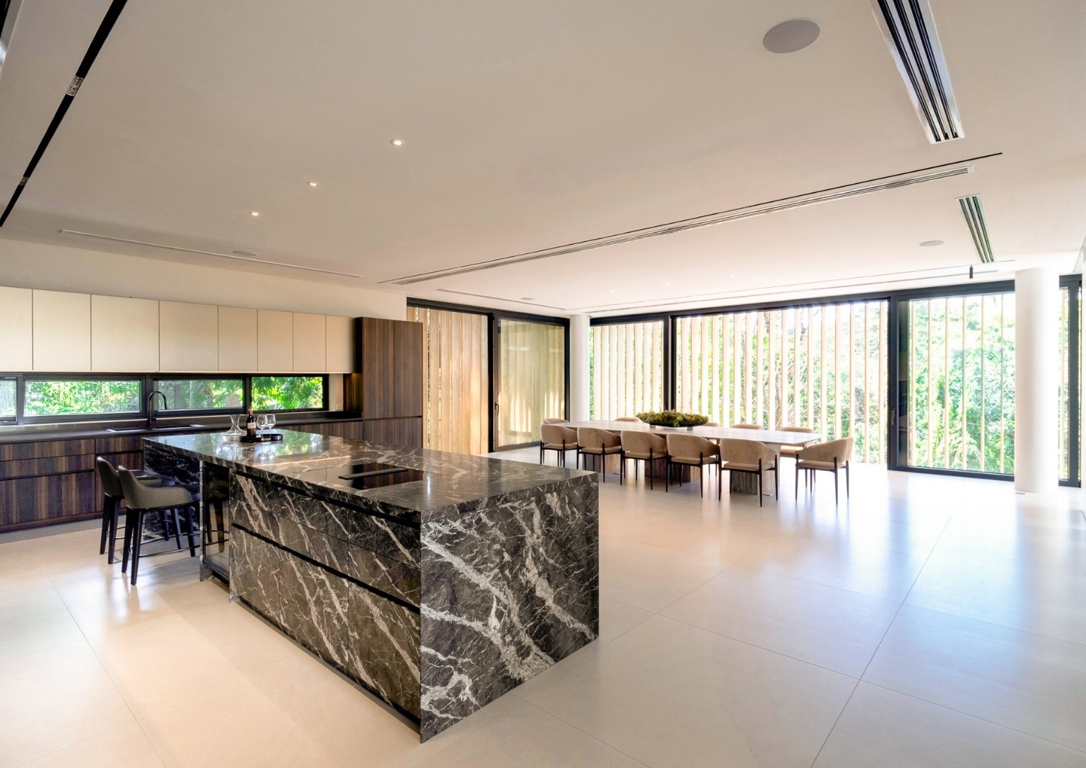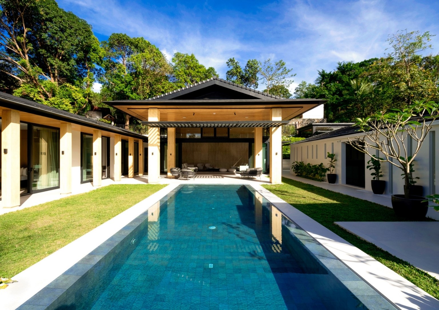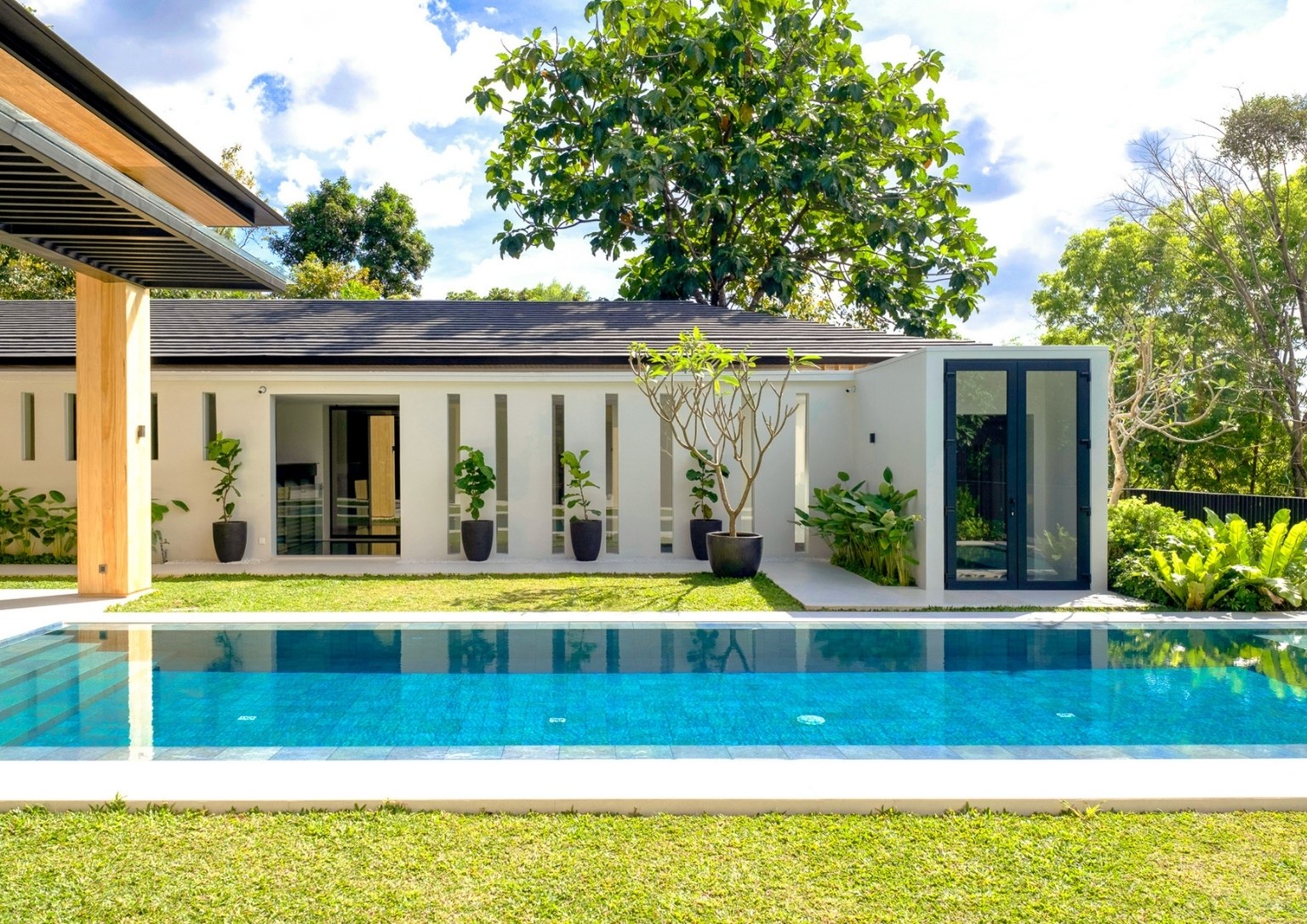 “We wanted people within the community and not just the homeowners, to realize that this house still feels like it’s one with the environment despite its size. The thermo-treated wood as a generous part of the house’s outer cladding speaks of this. Inside, you will still see timber elements. But predominantly, my team and I wanted to express it outdoors. As a team, we also know how to specify the correct and appropriate type of material for these architectural detailing exposed to the elements. That way, the authenticity is there but it’s still sustainable.”