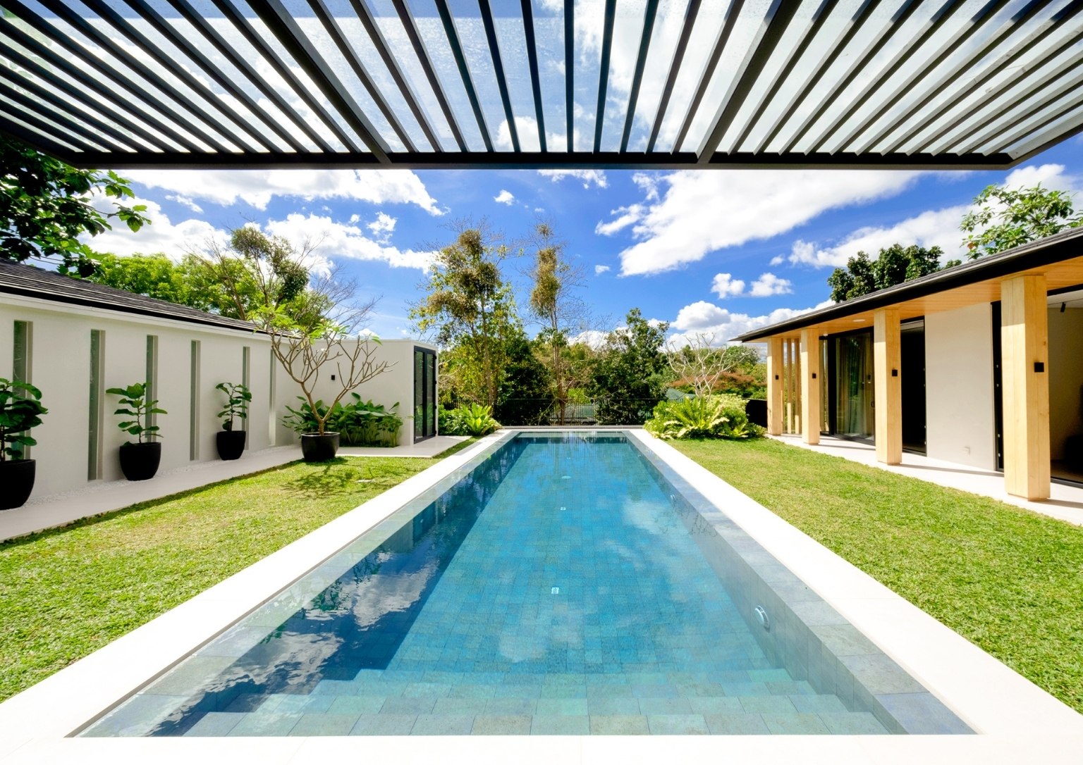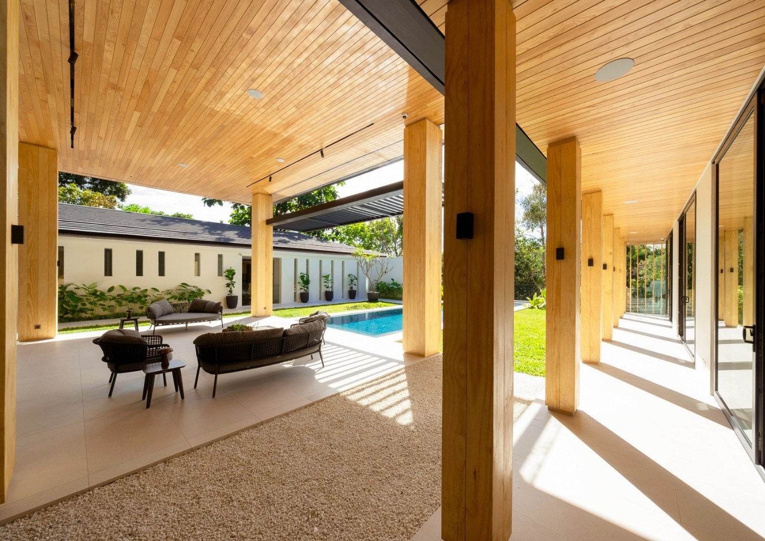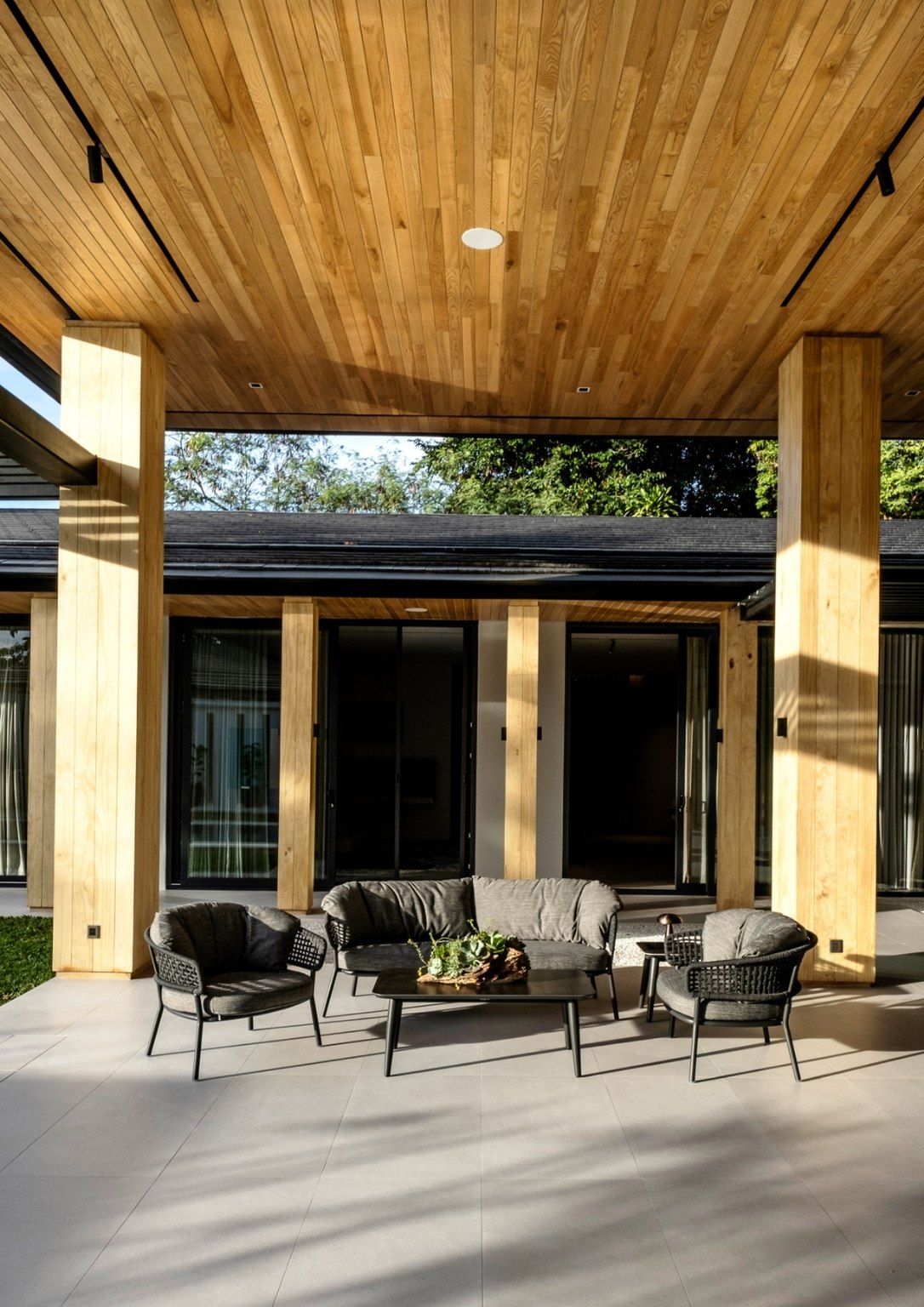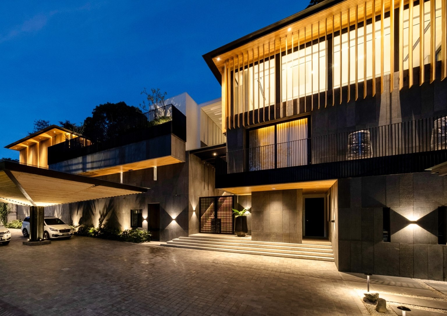 “We wanted to make sure that we use cladding material that was natural wood, not wood composite or the like. And we used wood here extensively. So, the brise-soleil and the canopy in the porte cochere feature natural wood. The appropriateness of it as an outdoor material is quite high. It doesn’t crack, it doesn’t warp, it repels termites. It’s a really stable material.