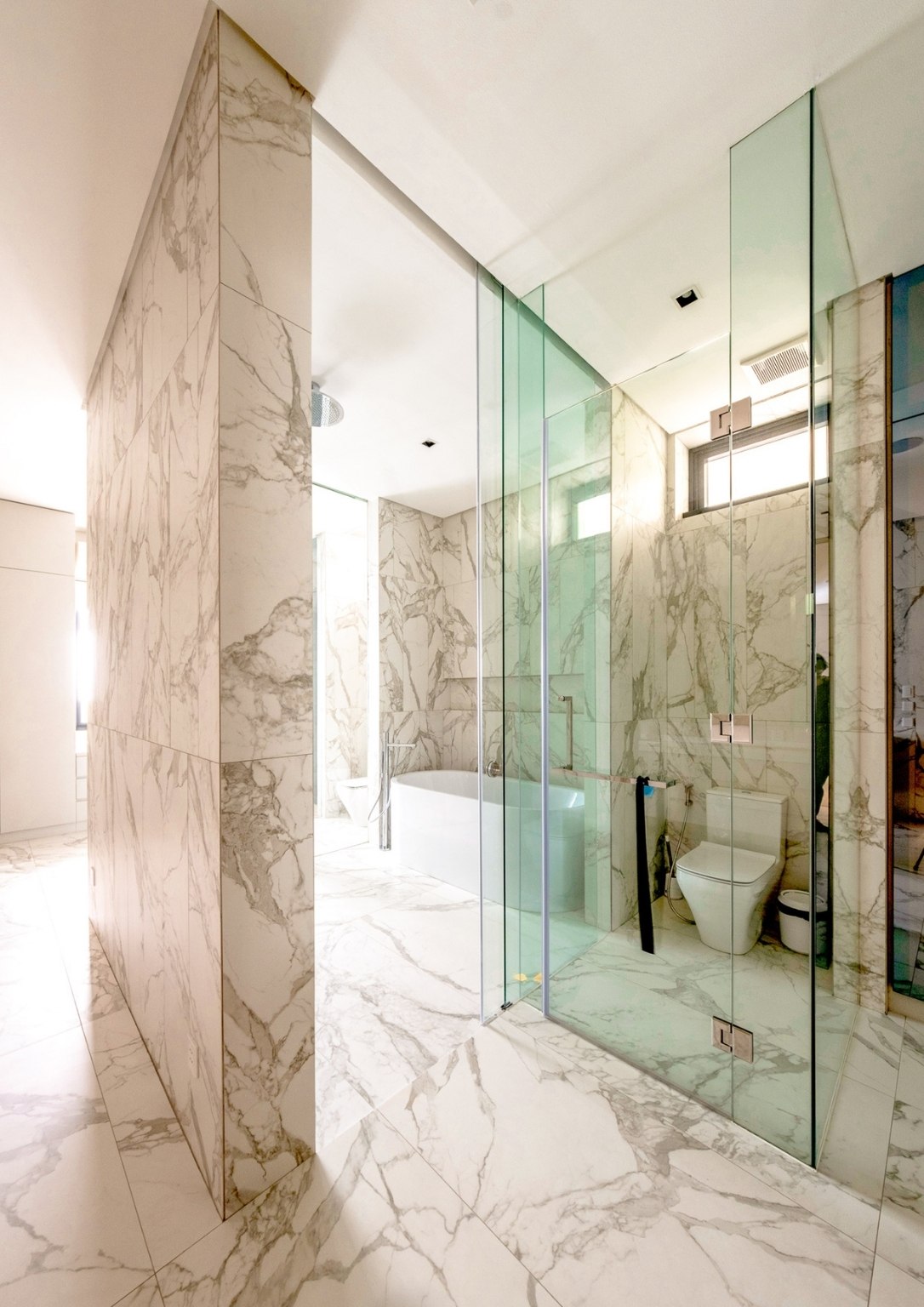 “We came to realize that the house should offer the sense of going on a journey, culminating in a breathtaking arrival. So when we approached the house, I knew I wanted to set it back 10 meters, far from the roadside and detached physically. There are no fenestrations in the first and second floors, except for the doorway that leads to the staircase. I felt these helped to create a sense of anticipation, and the journey from the ground level all the way to where we are now. “
