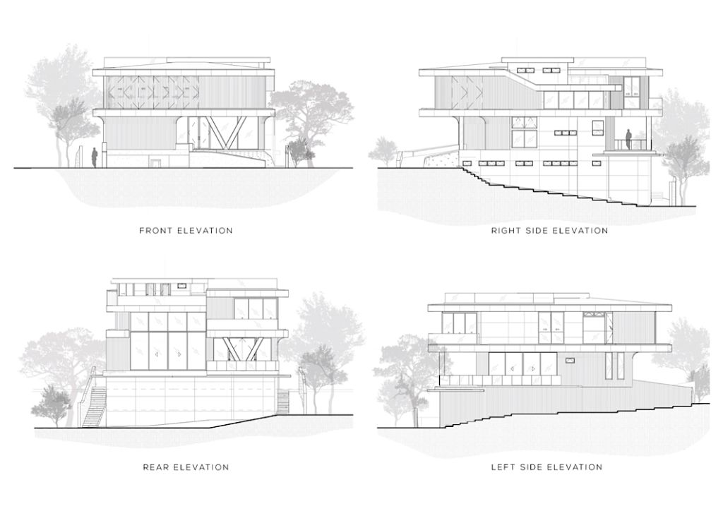 The use of extended cantilevers for shade paved the way for the incorporation of large glass panels, permitting residents and guests to appreciate the views and natural elements surrounding the property. As these large glass panels are also operable, residents and guests can easily open up and extend spaces to their delight. The interior also boasts a large open layout for the users of the vacation home to veer away from the feeling of restricted spaces of city living. Camber House has a total of 4 levels. The basement houses all the service areas, and the ground floor contains all the communal spaces such as the living, dining, kitchen, and guestroom. On the second floor would be all the bedrooms while the roof deck serves as the open lounge and viewing deck of the house.