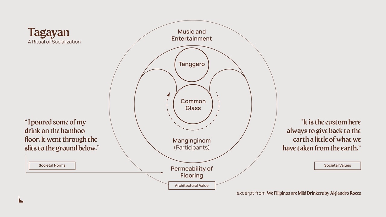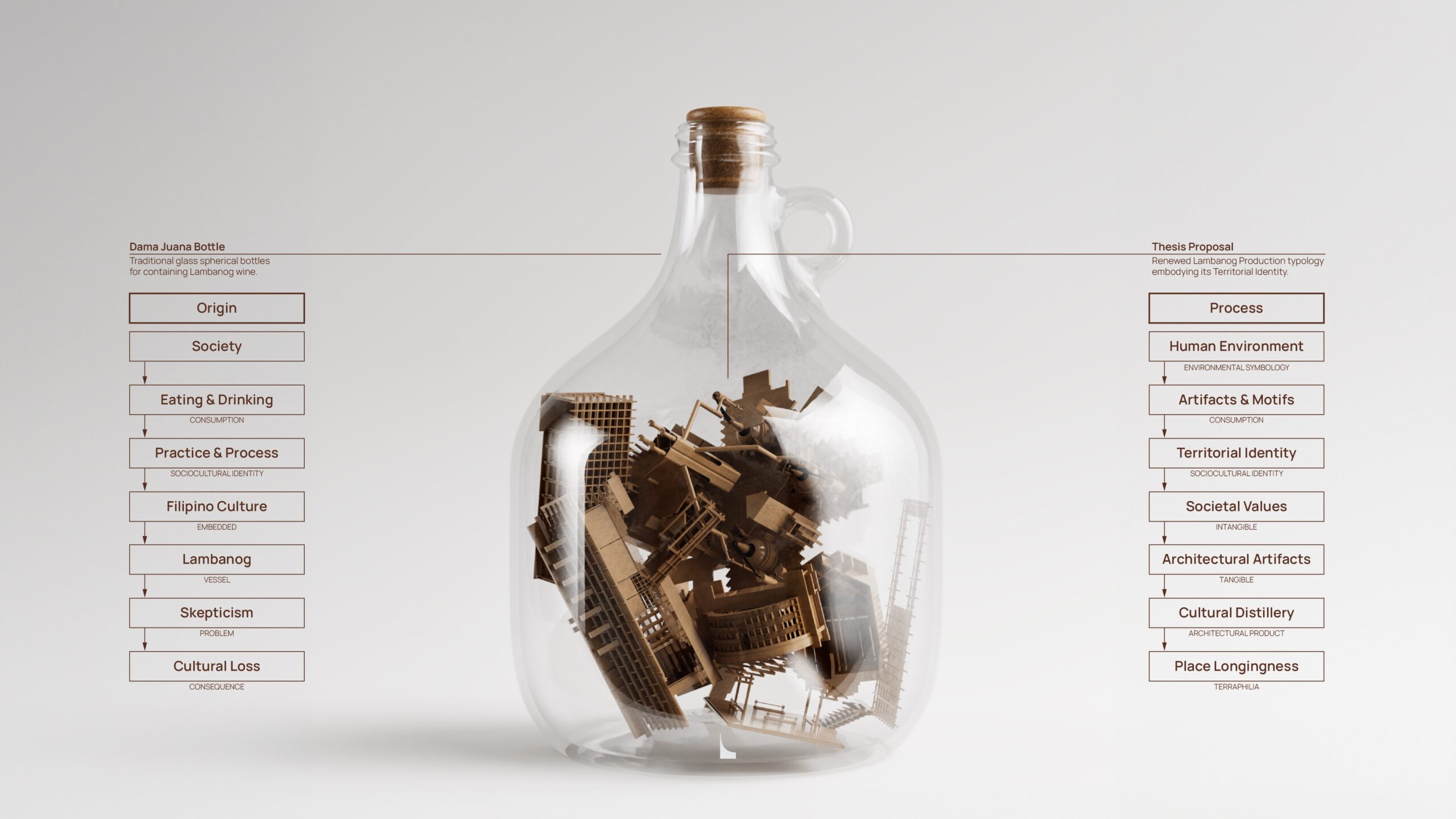 “ THESIS STATEMENT: Reintroducing traditional rituals and practices will enrich territorial identity and create a better culturally rooted architectural space for people producing and consuming the beverage, therefore making the local lambanog industry more competitive.”