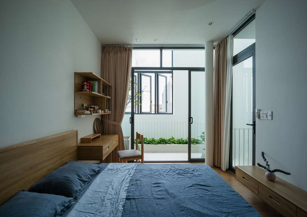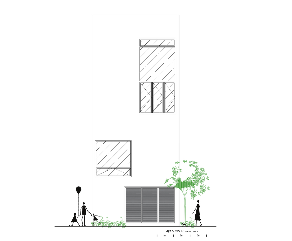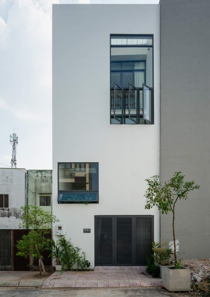 From the exterior alone, it’s easy to see how the the design maximized the 50 sqm lot area. The austere but elegant facade provides a clue to the functional simplicity that pervades in the entire house. The big windows, for example, tell of ventilation and natural light as the top priorities for the space. “The facade of the house with large high windows helps the house to always be filled with light and ventilation but ensures privacy for the owners,” the architects noted.