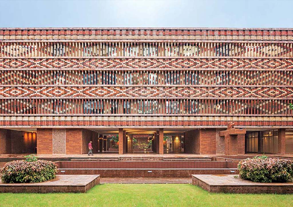 The government building Krushi Bhawan in Odisha, India designed by Studio Lotus has an elaborately designed brick facade that was patterned to emulate Odisha Ikat, the traditional dyeing technique from the eponymous Indian state. Its pedestals and north wing are mostly made of laterite. Bearing a color that results from a high concentration of insoluble iron oxides, the uniquely rusty-red laterite is compatible with both interior and exterior architecture. As a 100% eco-friendly product, it is typically used as bricks in construction projects for Africa and Asia and is a striking feature for any beautifully designed public building like the Krushi Bhawan.