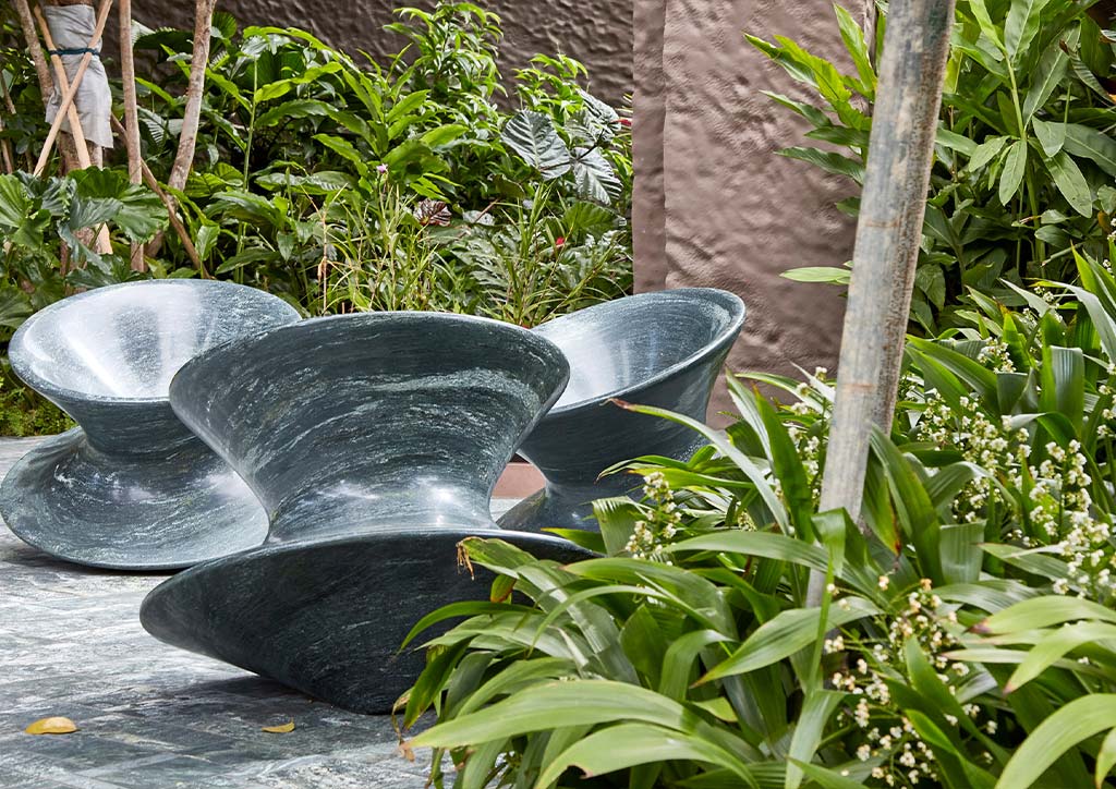 The Spun chair by Heatherwick Studio is a project that uses granite in a unique and enjoyable way. Made for the EDEN skyscraper in Singapore, the Spun chair’s granite edition was created to withstand the country’s tropical climate of intense heat to monsoon rains and high winds. It is also the latest edition of the top-shaped chair originally made from polished copper and stainless steel. Granite is one of the most widely used natural stones in the industry and can be spotted from laid-bearing structures to cladding, worktops, and furniture as in the case of the Spun chair. This highly resistant material was formed through the slow crystallization of magma beneath the earth’s crust. Aside from its compressive strength, durability, and low porosity, it has a wide range of coloring and can be used for various spaces and styles.