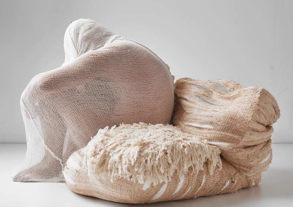 Heavily driven by sustainability and climate change, Vegan design innovator Erez Nevi Pana fuses art and design with his collection of banana-fiber shelter materials fit for an imagined climate-changed Milan. That is to say, he pulls from a tropical context to grow his own banana material used for a collection of circular products. These products include a human cocoon, hammock, and a bag-like chaise—human items he envisions to be necessary for the possible future.