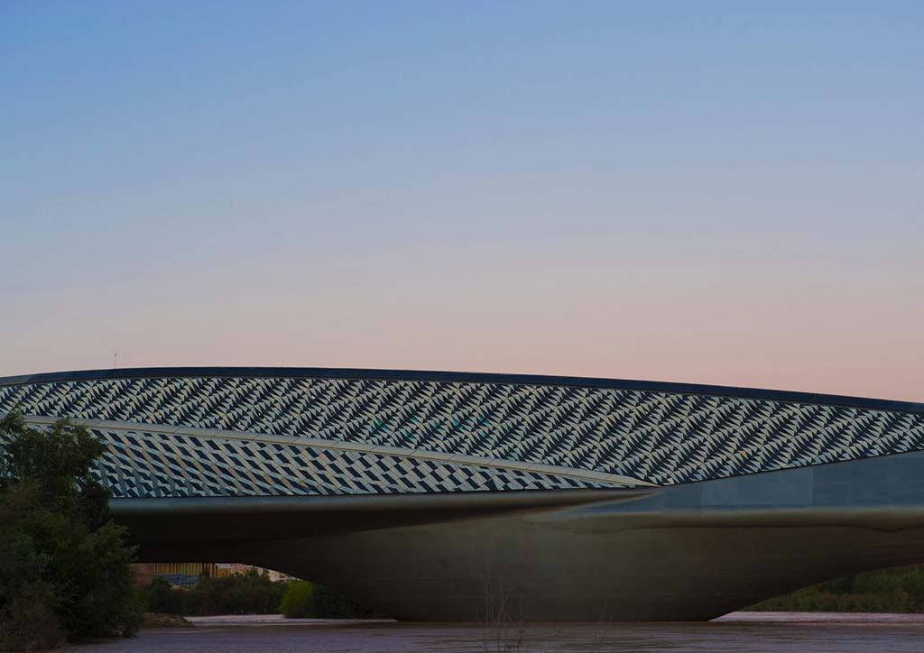 Set across the River Ebro, the Zaragoza Bridge Pavilion is a hybrid functioning as a pedestrian footbridge and the exhibition entrance. Expectedly, this highly detailed project amounted to a staggering 35 million euros–a copious amount of cash that had to address the difficulties brought on by the project’s shape and the site location of Ebro’s unstable river banks.