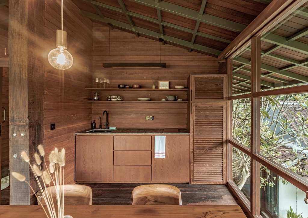 However, this new version also features a different layout compared to the Treehouse C previously designed in October 2020. In place of an open layout and a corner terrace, it was divided into three parts. It has a living area, a kitchen, and a spacious bedroom with a lounging area. The architects also designed it to comfortably fit 2-4 people. The big glass windows will provide them a stunning view of the surrounding rice fields.