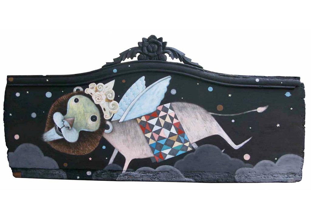 The artistic style of Farley del Rosario traces back to creative history. Since the beginning of the Millennium, a young artist movement focusing on simplified figures drawn child-like in a naïf expressionist manner has been underway. Focusing on themes like romance, memory, and children’s stories, this artform revels in the process wherein art becomes “illustrational,” that is, that paintings serve to illustrate stories or values that are often derived from literature. Although the modern-day book publishing industry has made this concept an everyday popular occurrence, its origins are more hallowed. During the Medieval period, when books were prohibitively expensive and the majority of the population was illiterate, biblical narratives and episodes of the New Testament were painted into huge frescoes, built up into mosaics, or carved into stone and wood, and decorated churches and cathedrals so as to serve as visual lessons and cues for parishioners to learn their catechism from the walls and ceilings. When book publishing began in the West in the 1500s, woodcut prints and etchings served as additional art forms that were used to complement the printed literature and allowed audiences to treasure books as works of art themselves. The modern publishing industry of illustrated children’s book, comic books, graphic novels, and coloring books thus follow a deep and rich history of illustration art stretching back at least one thousand five hundred years.