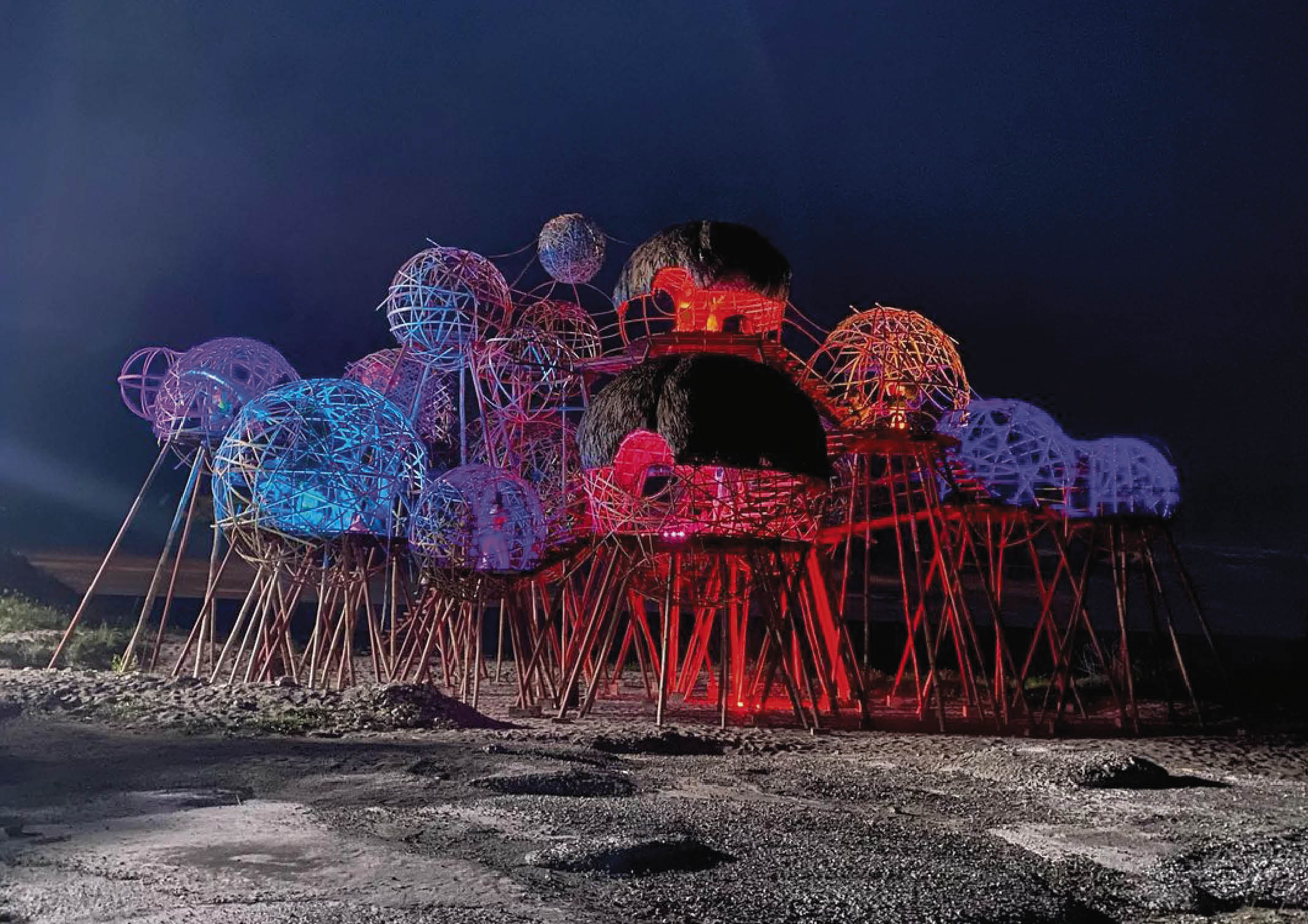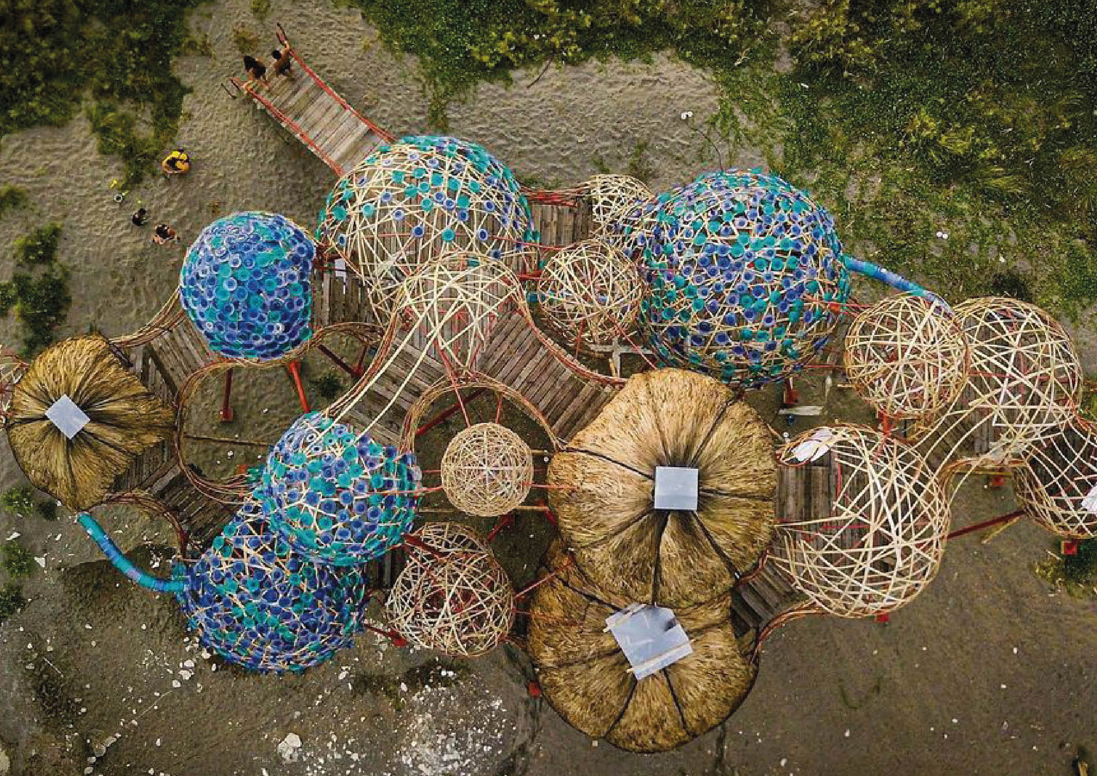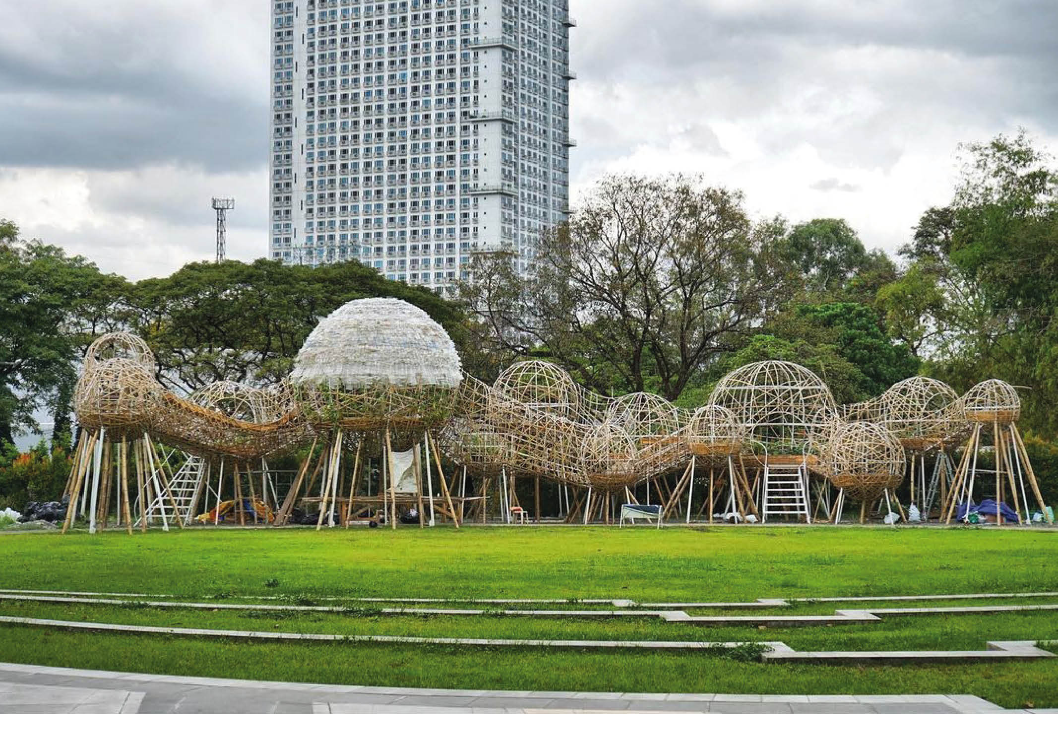 Leeroy New, a renowned Filipino artist-designer, saw an opportunity to use both of his works, the Meybuyan Colony in Arete and the Meybuyan Vessels in La Union, to become a platform to discuss critical issues in our society, and the viable solutions for them. Both installations were inspired by Meybuyan, the Bagobo goddess of death and fertility, who nourishes the spirits of the dead children to grow and carry on with their journey to the further afterlife. Meybuyan colony, in particular, is a collaboration primarily with Jose Felix, an agriculturist, and other experts that helped translate the vision for the installation. The colony is made out of several pods constructed using discarded materials. The pods act as elevated greenhouses that integrate agricultural systems and biotechnology into the whole structure.
