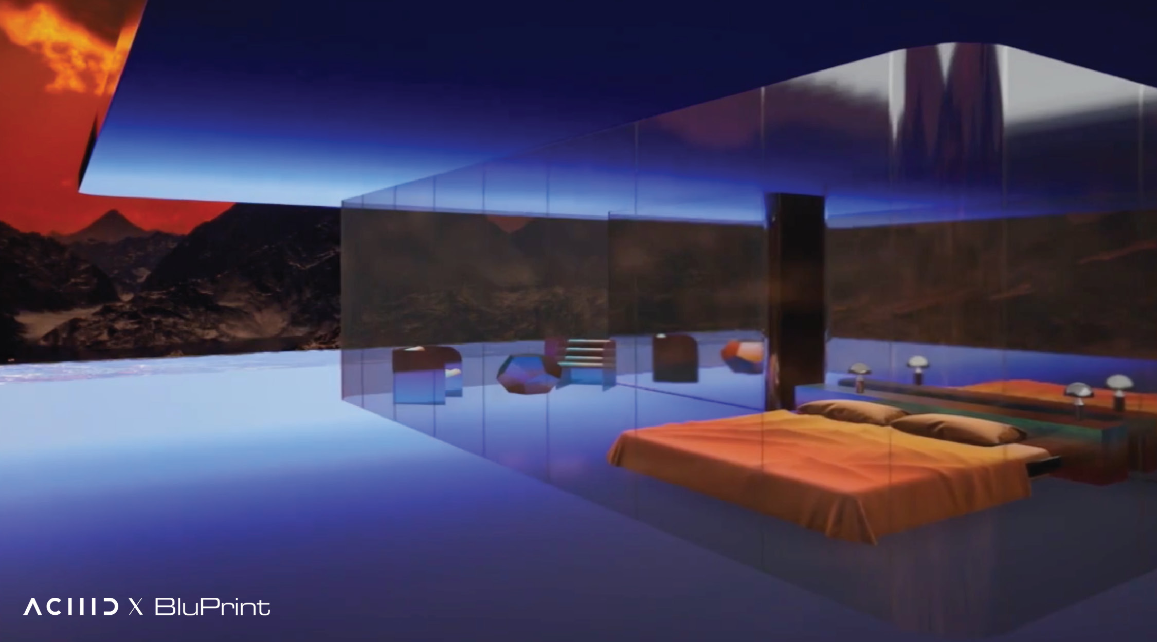 Mars House fosters a sense of tranquillity, serenity, and calmness in the metaverse. Kim describes the project as a light sculpture, with its open-plan design, and floor-to-ceiling glass walls. The mood is enhanced with an overlooking mountain range and an accompanying song by Jeff Schroeder from the band The Smashing Pumpkins. The Mars house offers not just a visual delight for the users but a mindful journey to emotional wellness as well.