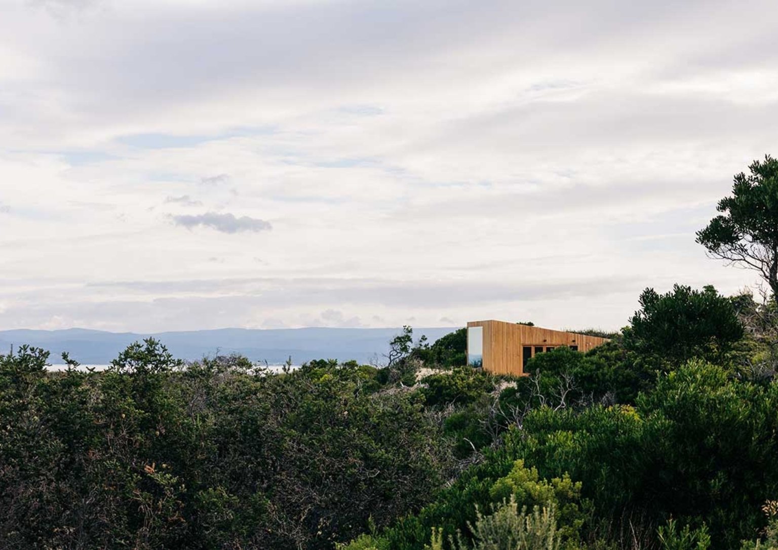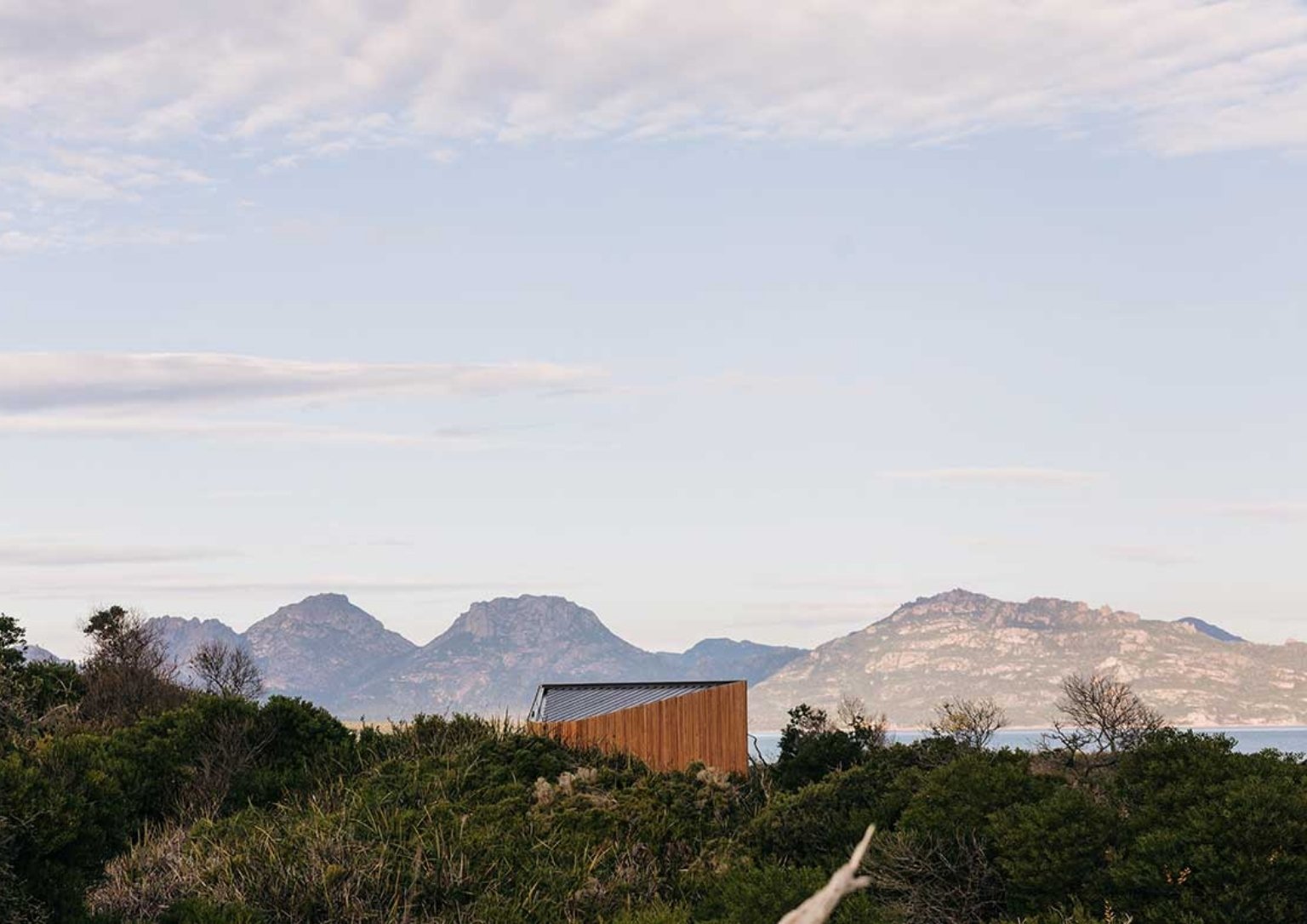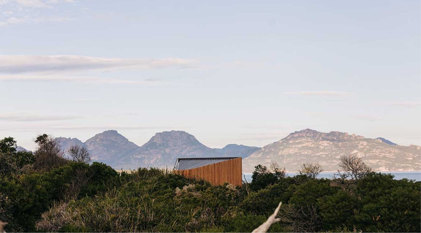 To celebrate Earth Day, we take a look at this sustainable tiny home built on Dolphin Sands on Tasmania’s east coast. Designed by Architect Matt Williams for a couple, this 36 square meter home looks out toward the Freycinet Peninsula, across Great Oyster Bay. The classic slide viewfinder inspires the architectural shape, a very fitting motivation for a house surrounded by spectacular sea and land visuals.