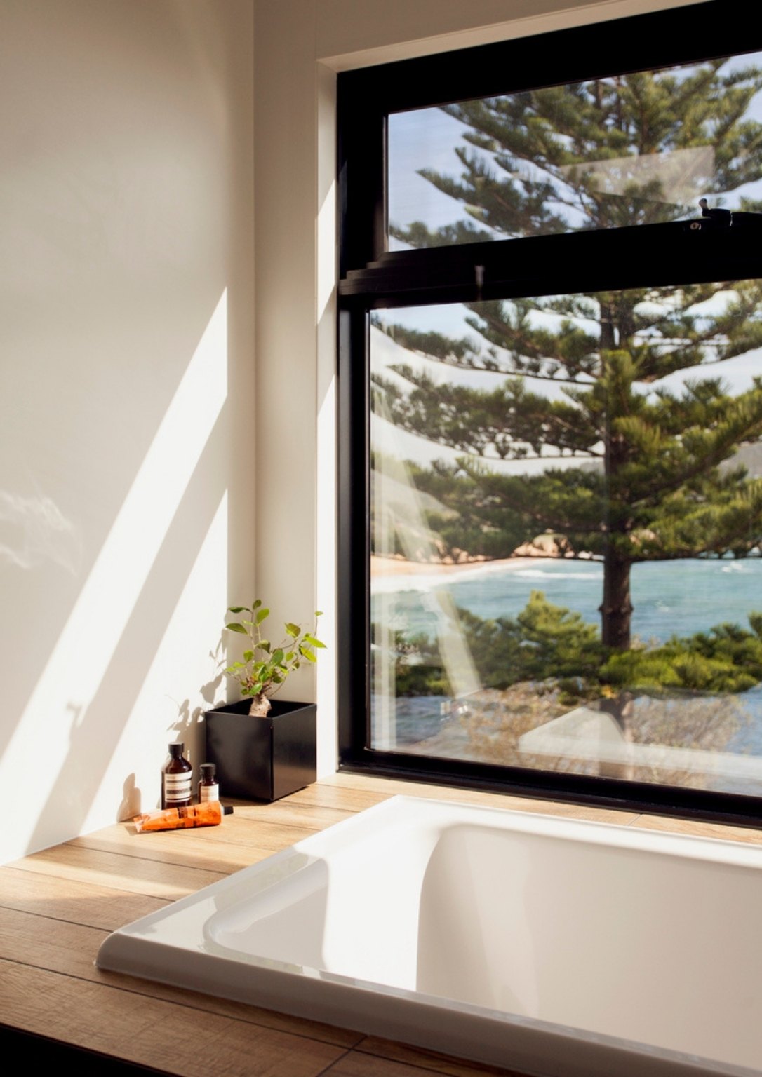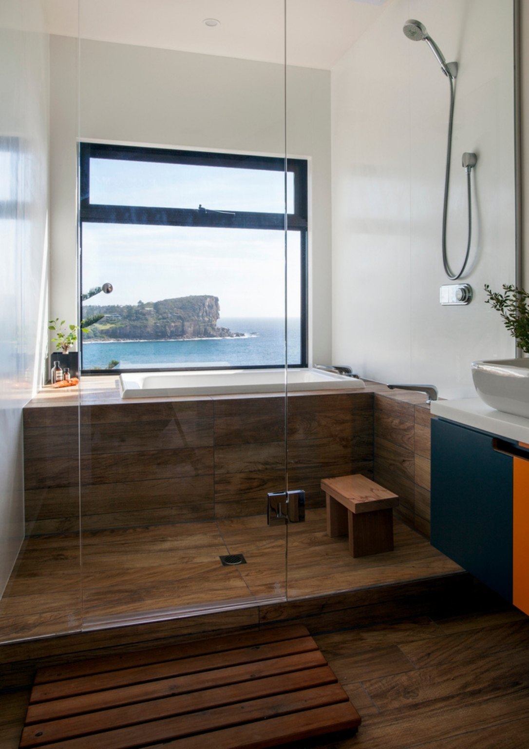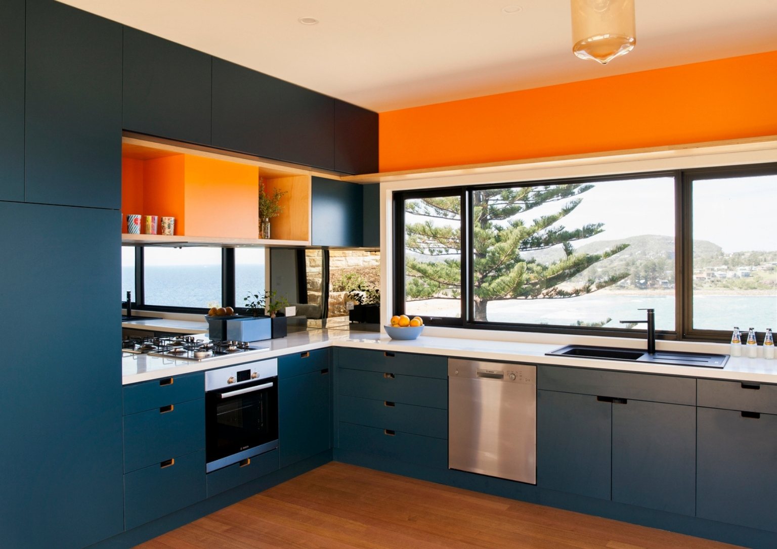 Design-wise, the interior aesthetic of the house is very minimal with a pop of color, especially in the kitchen. The utilization of huge glass windows with a sea view added immensely to the relaxing vibe of the house.