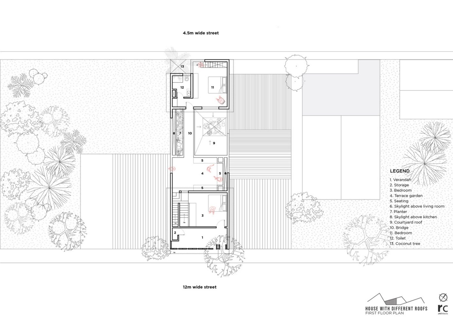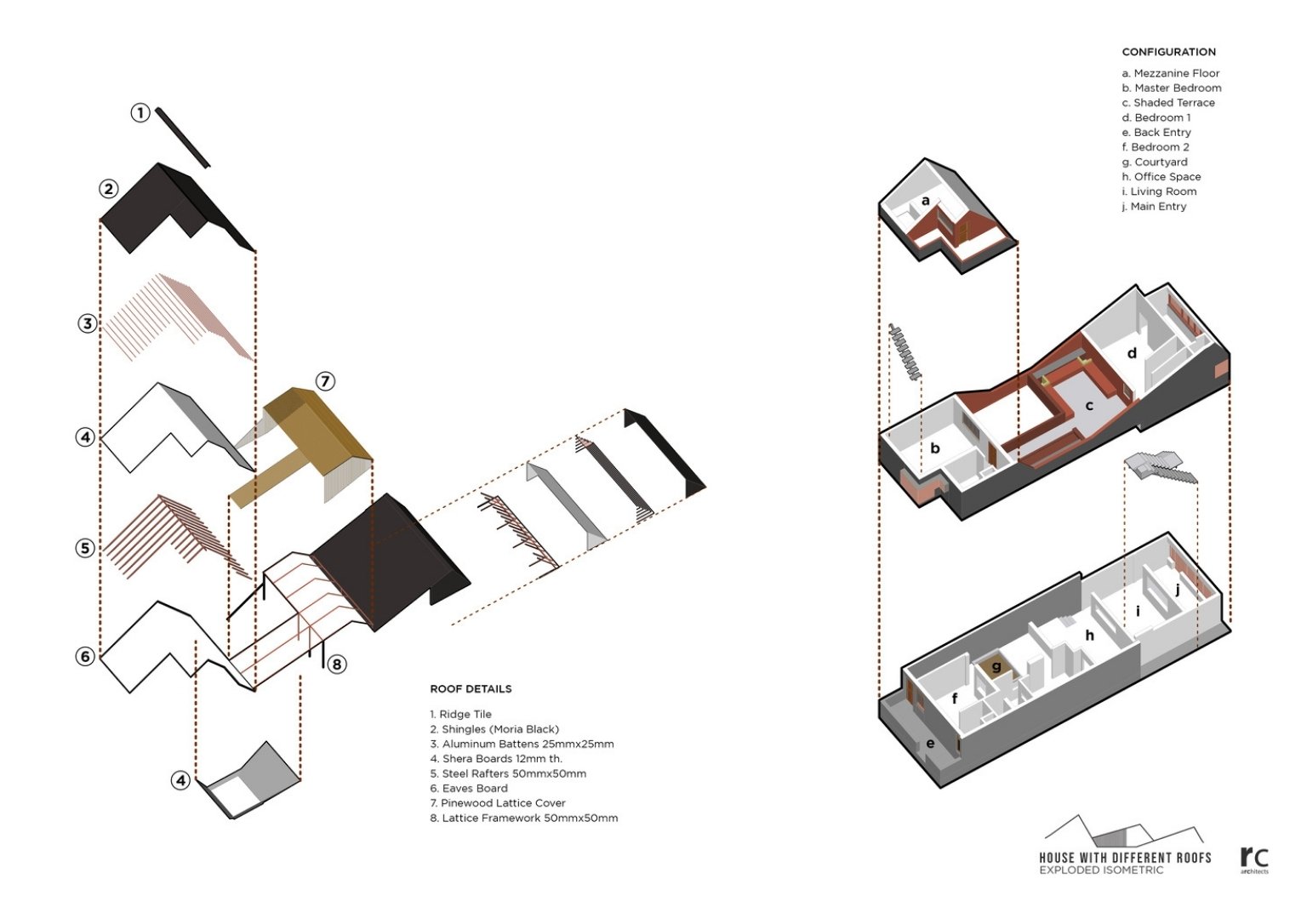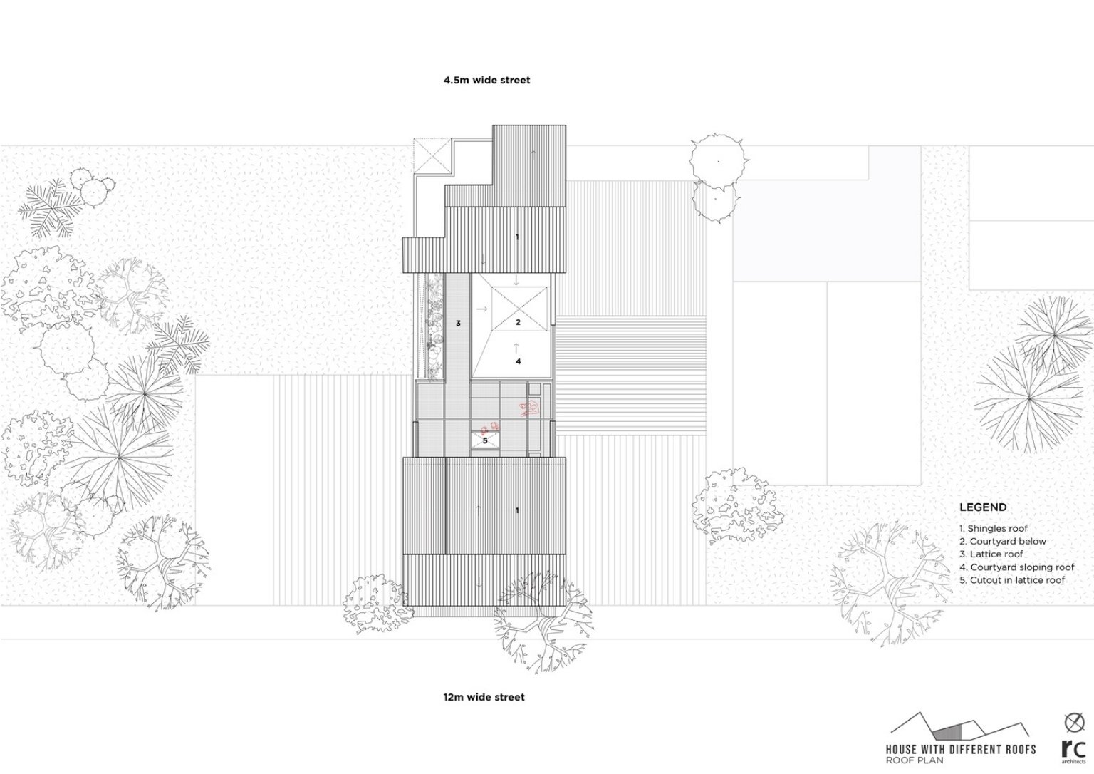 In a dense neighborhood in Gadhinglaj, India, is the ‘House with Different Roofs’ by RC Architects India. The project envisions maximum natural light and ventilation for the house while retaining privacy. Different roof types cover the entire house delivering an extraordinary experience for each space. The architectural team designs the structure with elements that allow organic ventilation sources and provide separate zones for simultaneous activities. The built structure presents a unique concept in its suburban setting.