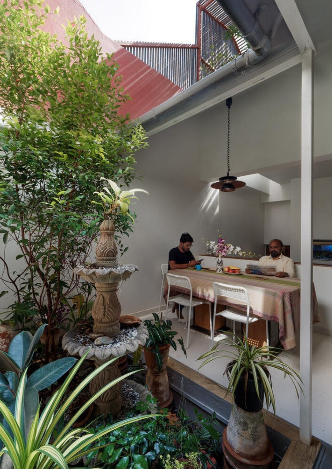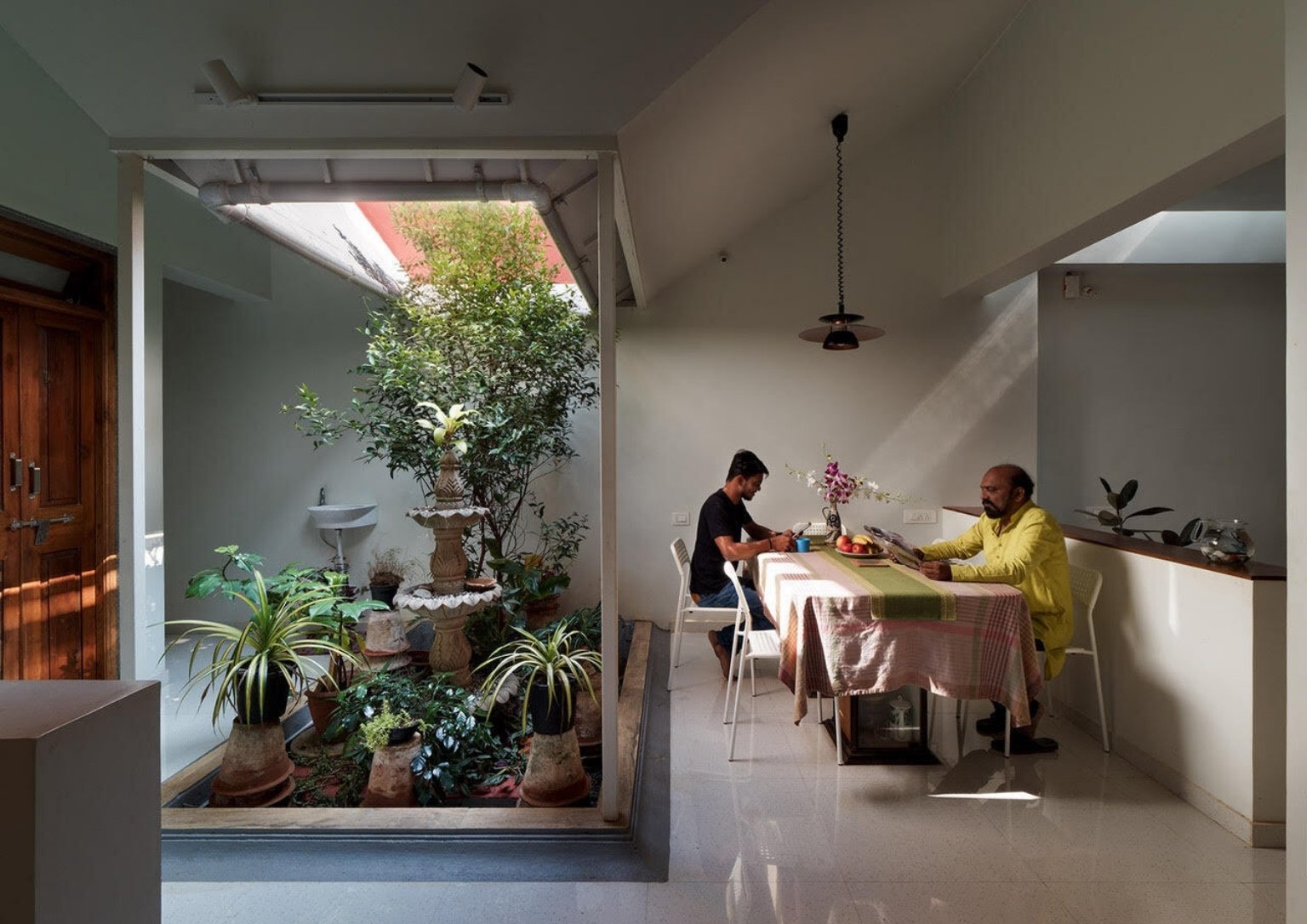 The garden acts as the rallying point for each room. It helps balance different events at different times of the day in an environment with varied uses within the house.